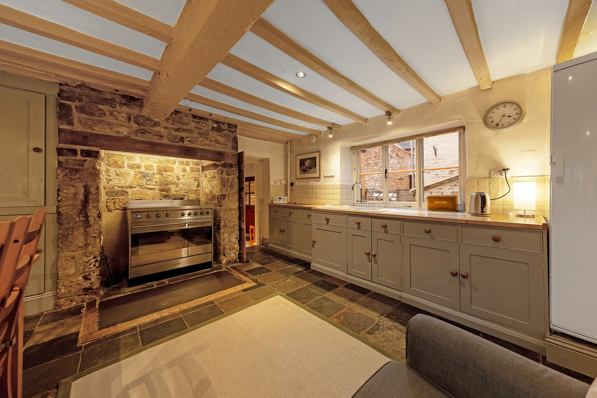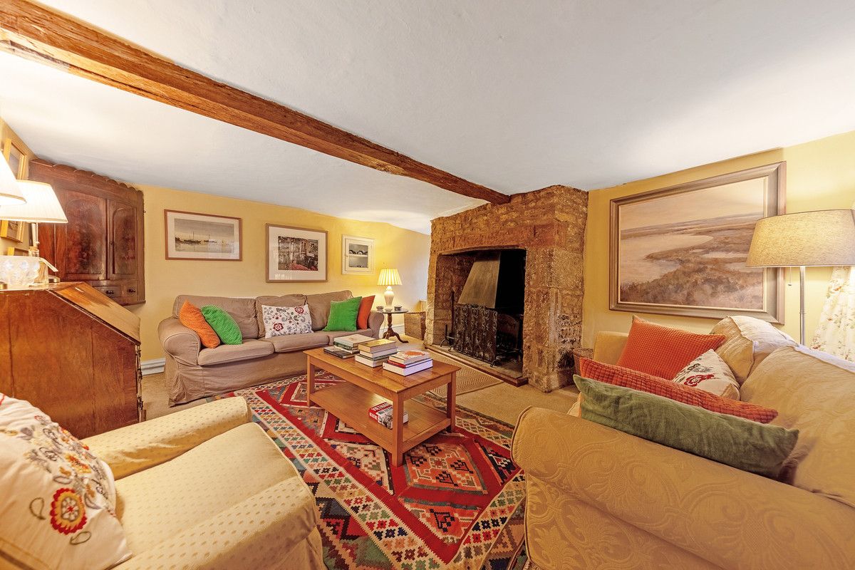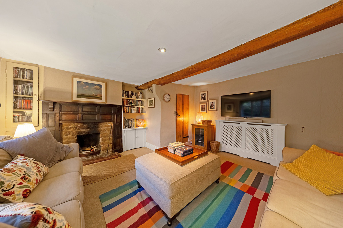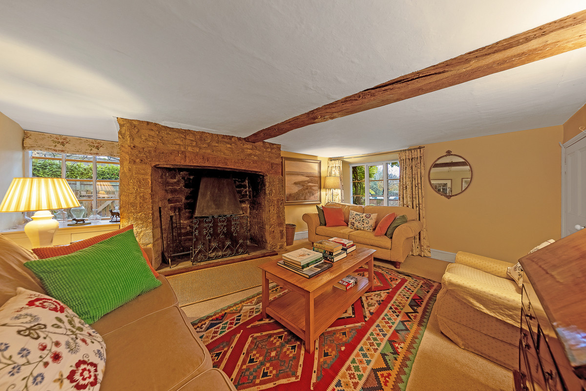 - Sitting room with open fireplace and beams