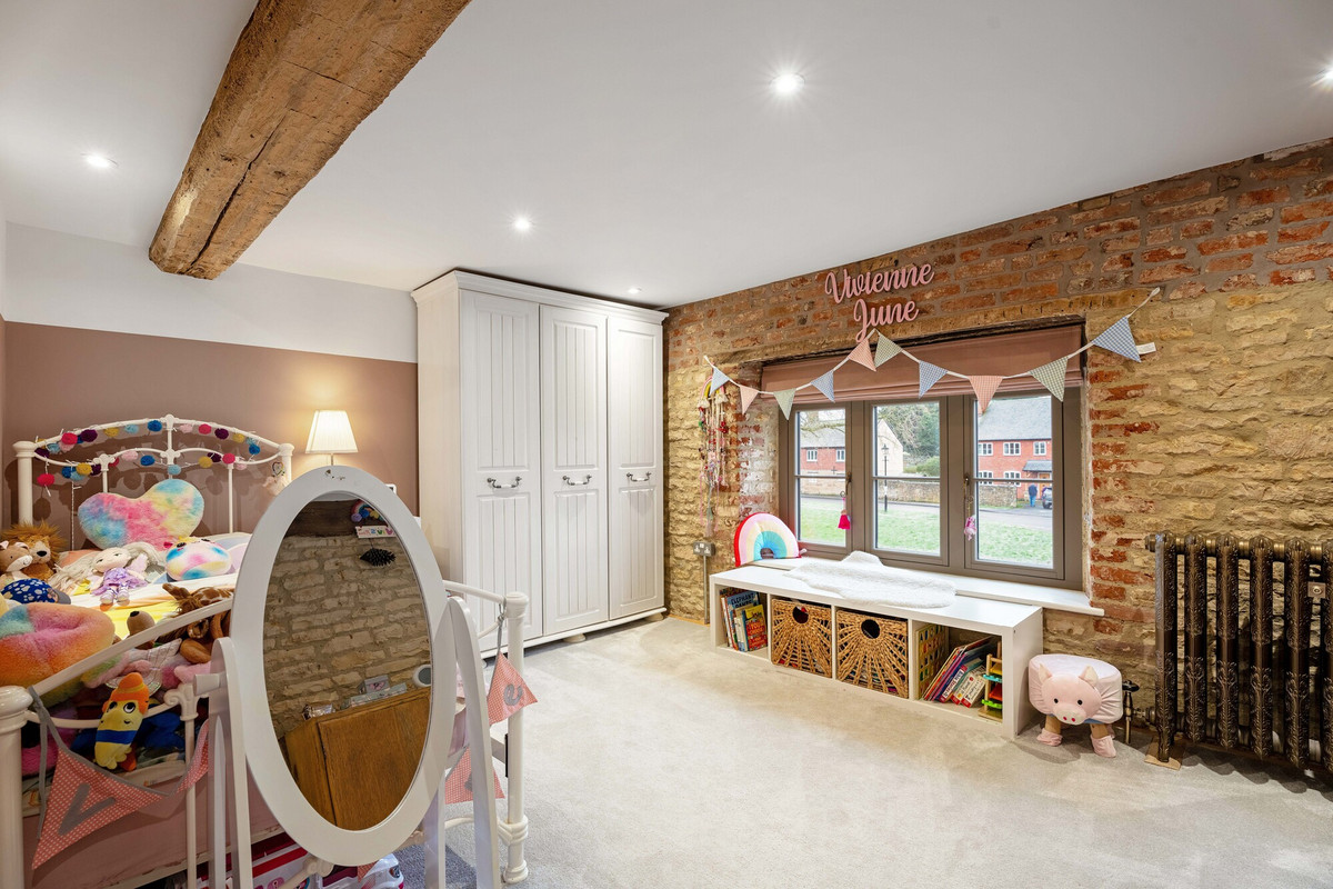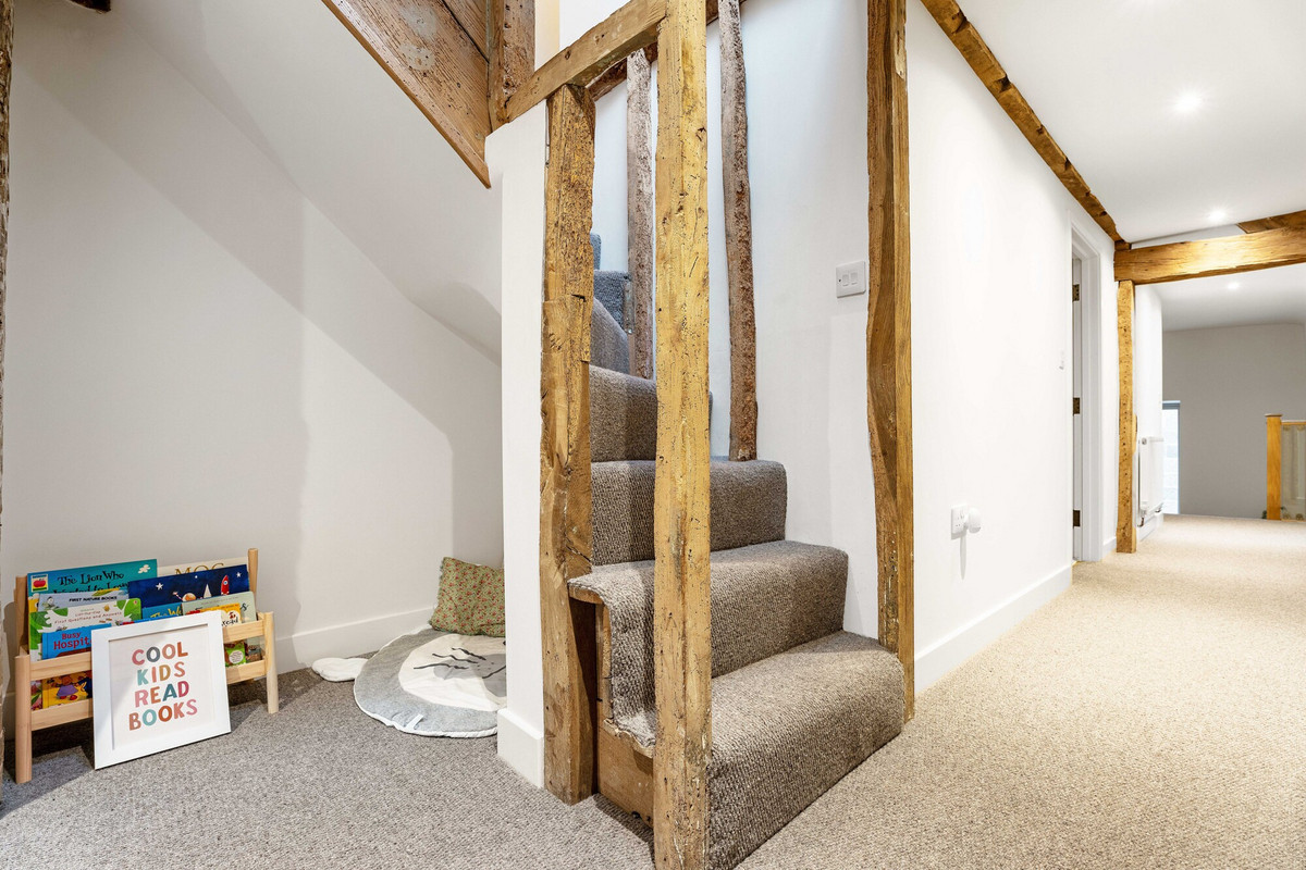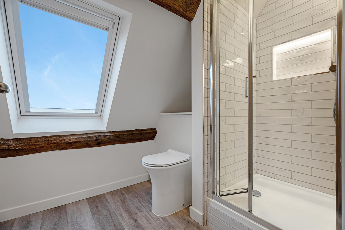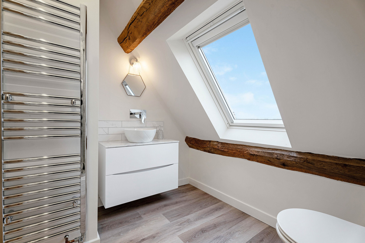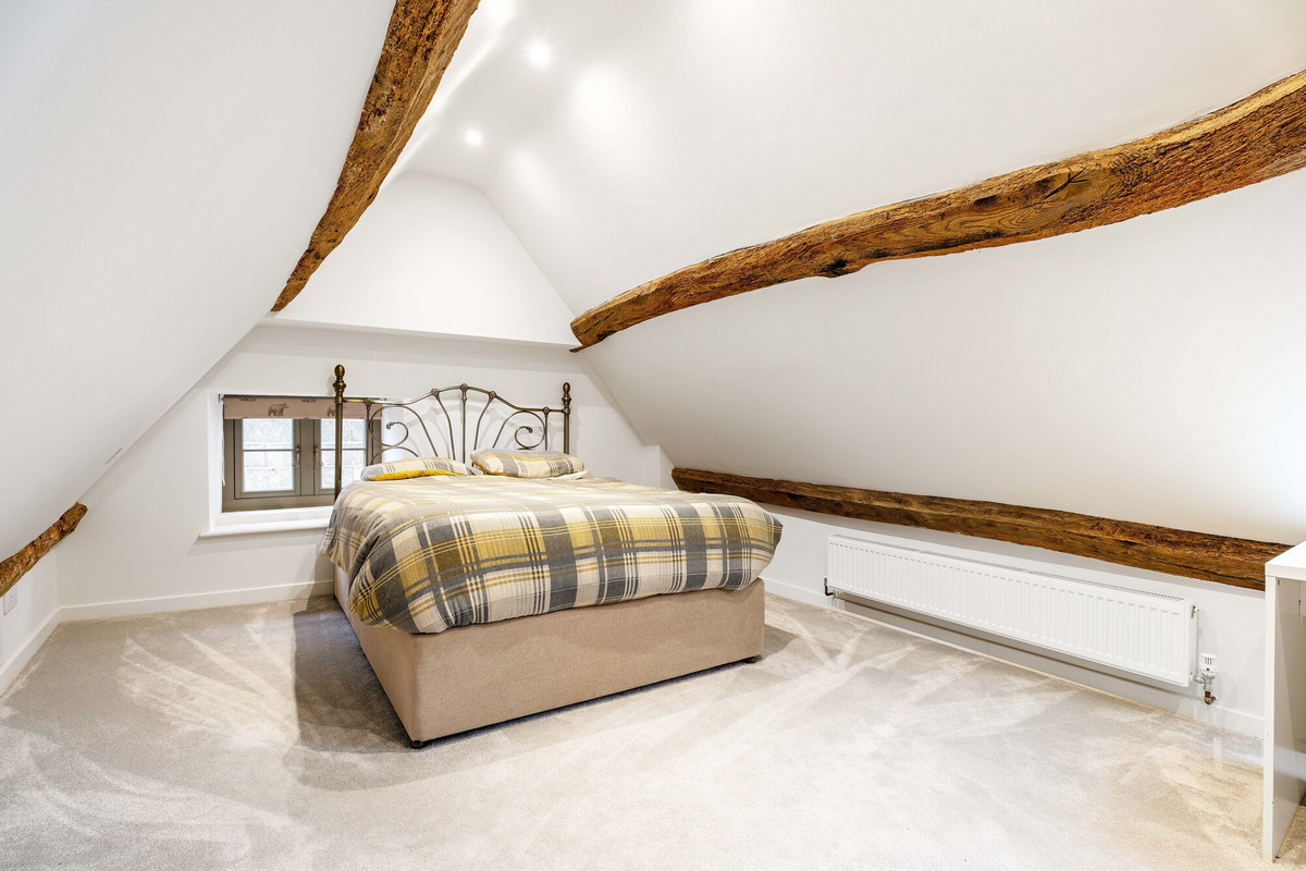 The second floor provides two further double bedrooms, both of which offer generous proportions and featuring character beams. A contemporary shower room serves this floor, ideal for guests or older children.