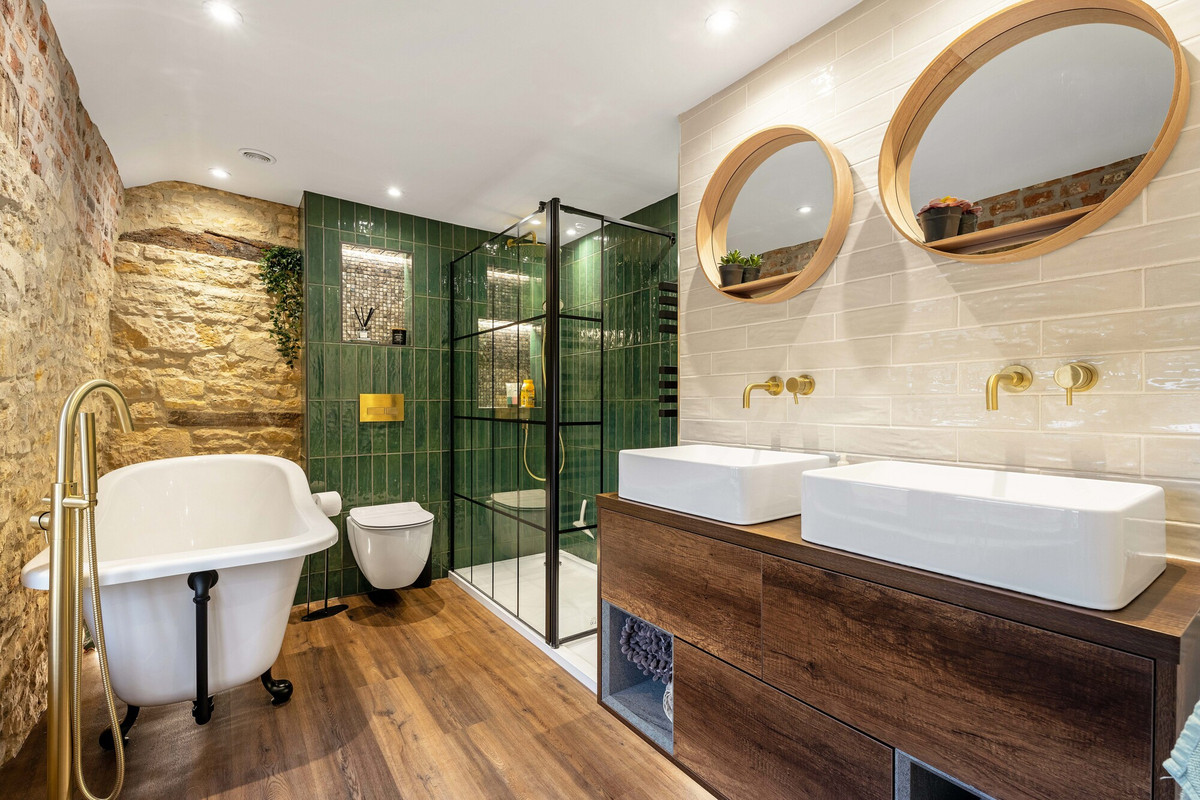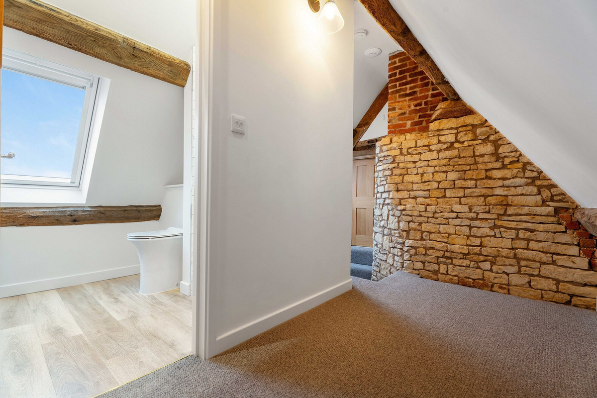 The first floor offers a serene principal bedroom suite, complete with a dressing room and a stylish en-suite bathroom, featuring a freestanding bath, a separate walk-in shower, and elegant tiling for a refined finish. This floor is enhanced by original exposed beams that add a touch of character. Two additional double bedrooms, thoughtfully designed to showcase the home’s period charm with exposed stone and timber details, provide ample space and comfort. Completing the floor is a modern family bathroom with bath and separate walk in shower.