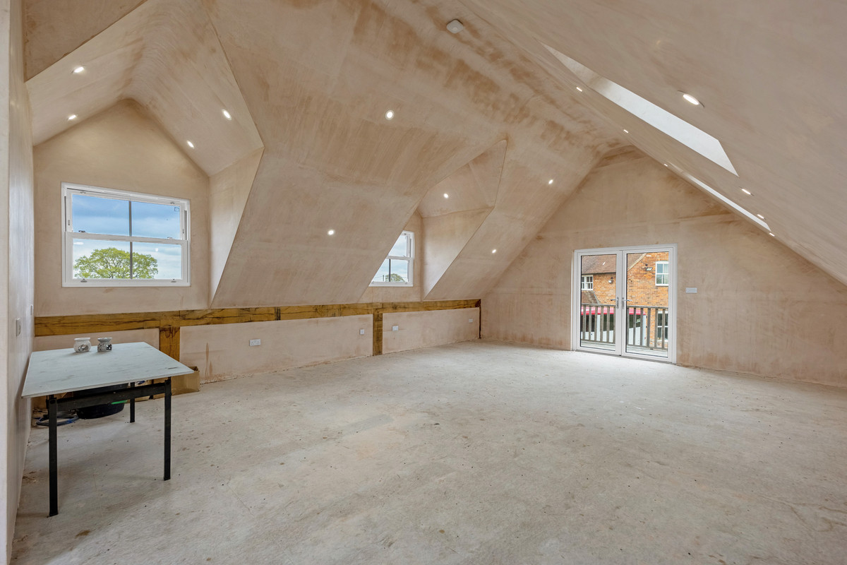 Opposite the main house, the detached annex offers superb flexibility. Currently used as a home office and hobby room, it is fully insulated and features full-height glazing and exposed brick. The triple garage provides ample covered parking and storage, with a first-floor living area with balcony, ideal for conversion into a studio or additional accommodation.