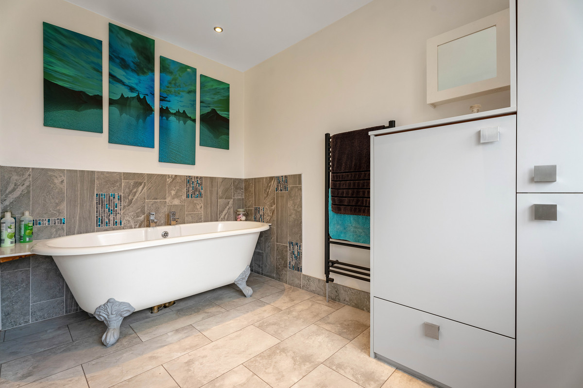 The first floor offers four good sized bedrooms with one ensuite and one full family bathroom with large roll top bath and double walk-in shower and fitted bathroom cupboards.