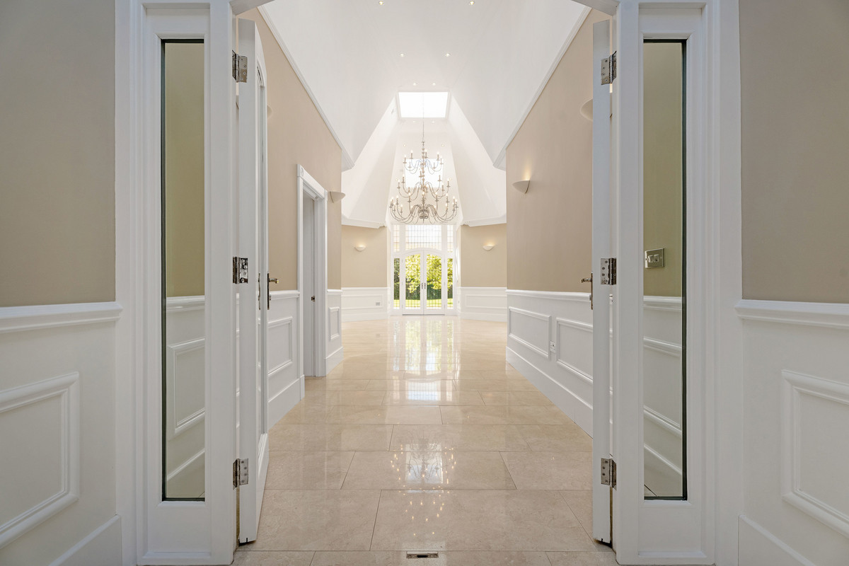 As soon as you step through the doors of this incredible home the amount of space can be felt immediately. A beautiful entrance hall gives access to the two wings of this expansive home, there are French doors that also take you through to the wonderful rear gardens and a large lantern which lets in an abundance of light with a stunning chandelier for evening lighting.