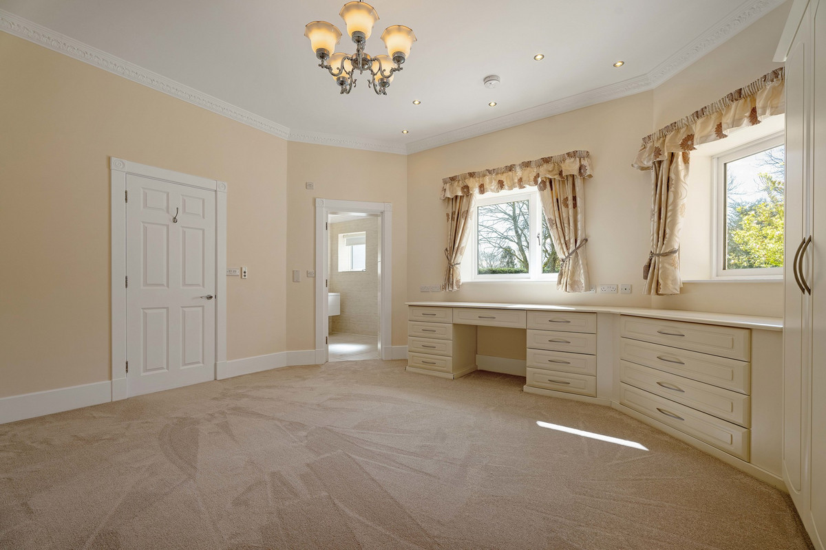 The left wing holds further generous living accommodation. From the main entrance hall, you enter a lobby which leads through into a large living room. At the rear of the living room, you will find two large double bedrooms with ensuite bathrooms. To the front elevation of the left wing, you will find a large triple garage with electric doors, an abundance of storage, two w/c’s, and a good-sized utility.
