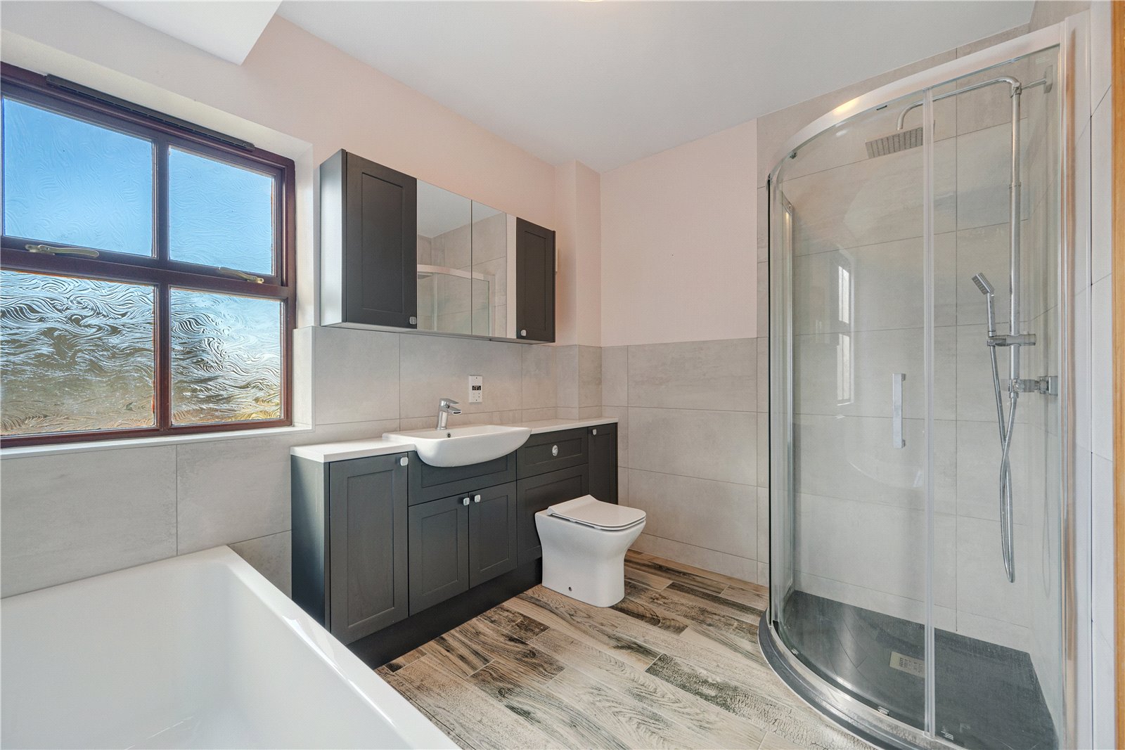 Heading upstairs, this home features four generous bedrooms, perfect for family or guests, alongside a well-appointed house bathroom. The main bedroom is a serene retreat, complete with an en-suite bathroom and picturesque views of the rear garden and surrounding fields, ensuring a peaceful sanctuary for relaxation.