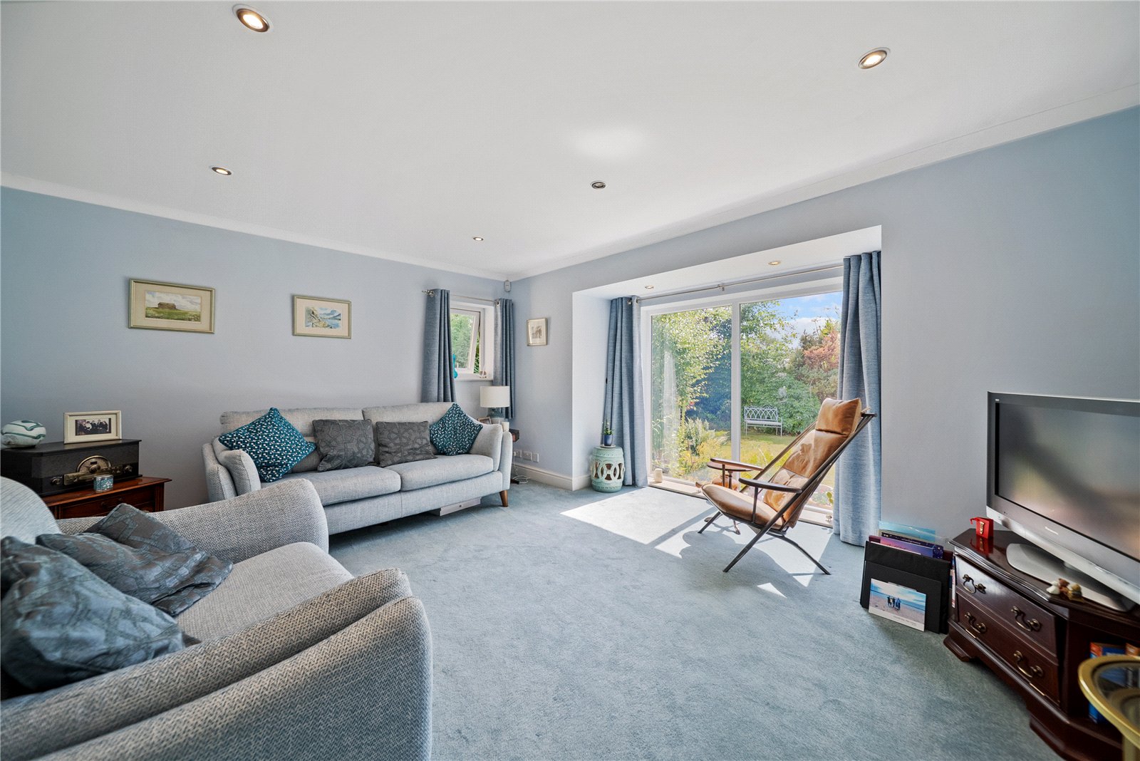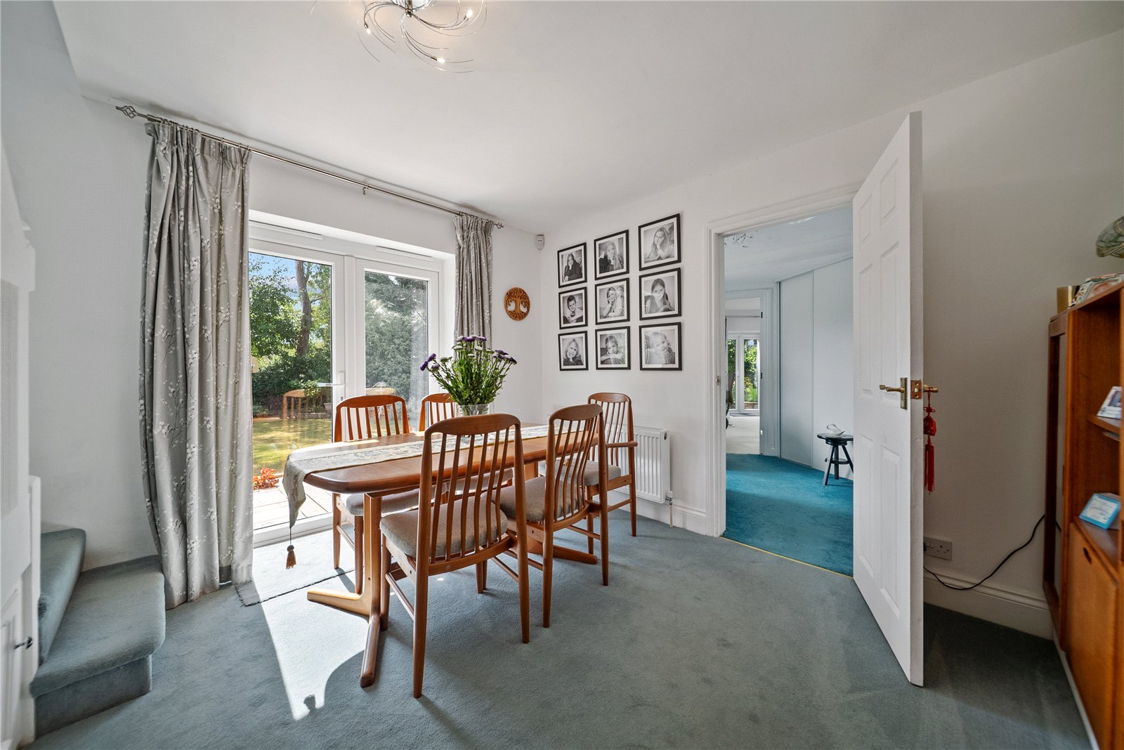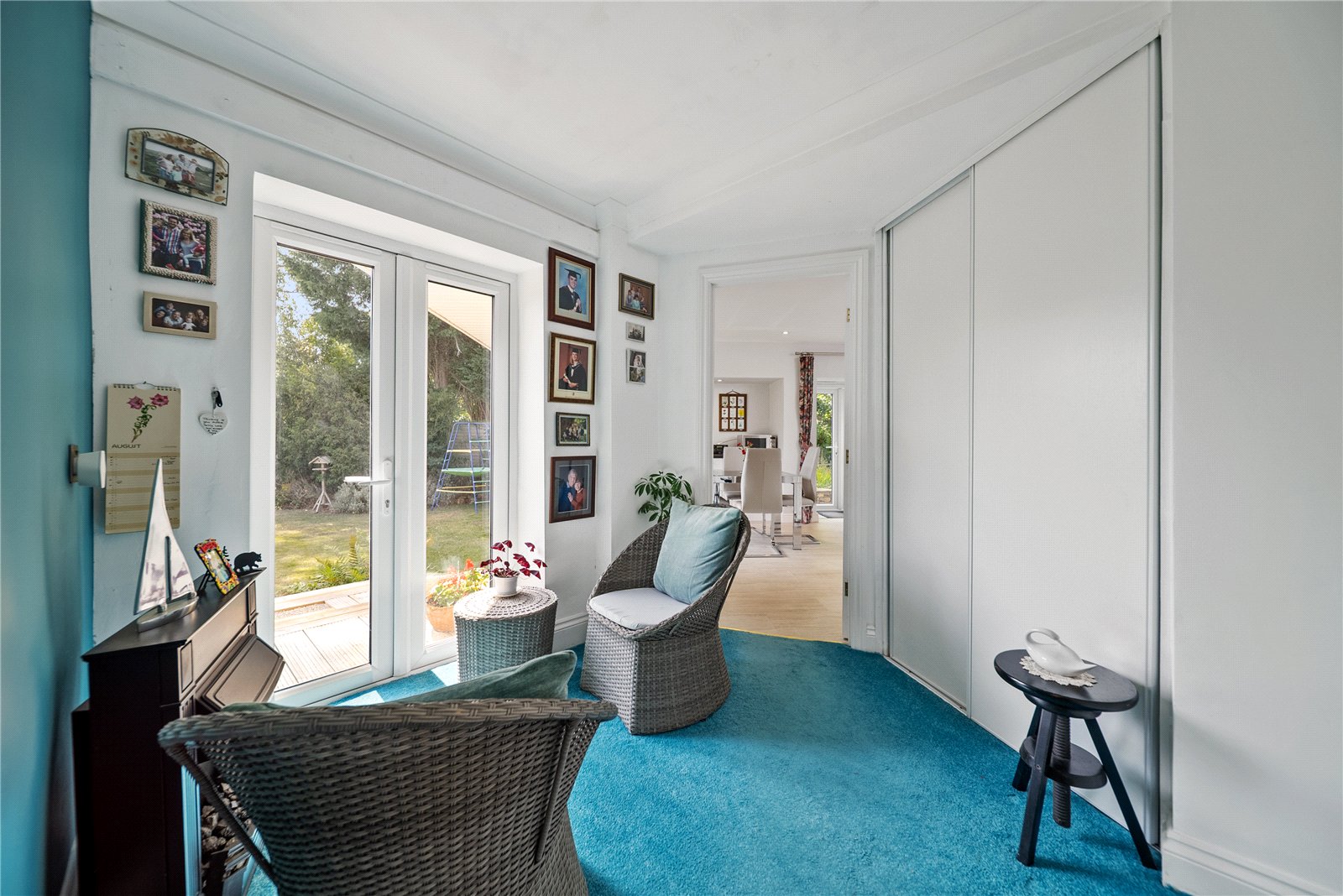The home welcomes you with a spacious porch leading to a guest w.c. and a bright, inviting entrance hall. From here, the house opens into a selection of versatile reception rooms, five in total which provide plenty of room for family gatherings, entertaining guests, or creating dedicated spaces for work and leisure. To the rear, a beautifully light dining kitchen with integrated appliances overlooks the south-facing garden, filling the heart of the home with natural sunlight throughout the day.