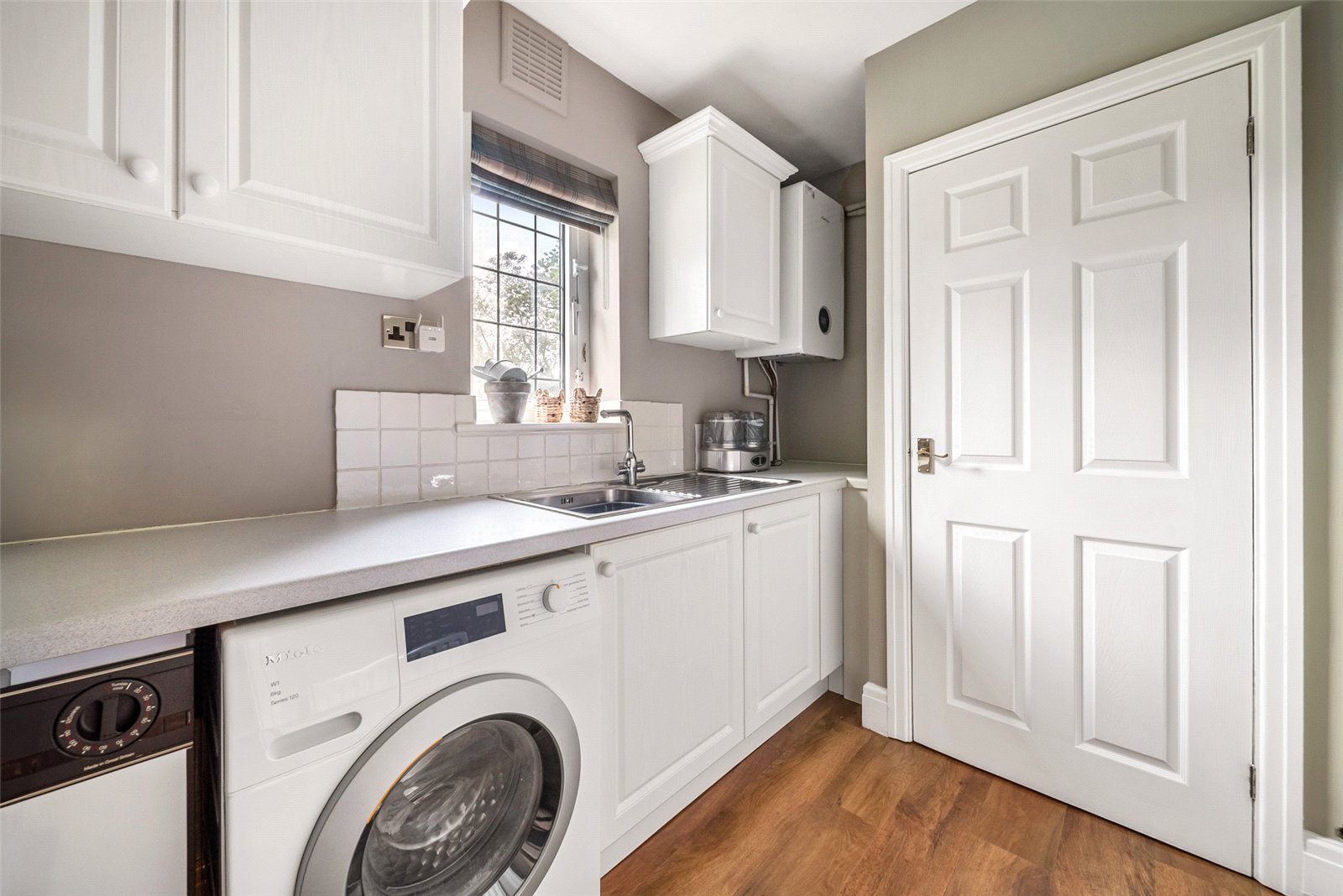 Upstairs, the home offers four generous double bedrooms. The master bedroom is fitted with Strachan wardrobes complete with a private en-suite with a power shower, cast iron bath and underfloor heating. The fourth bedroom also benefits from Strachan fitted wardrobes. The house bathroom is similarly fitted with a power shower and bespoke cabinetry. The part-boarded loft in this home provides additional storage or the potential for future conversion. Gas central heating runs throughout the property, adding to the home’s practicality.
