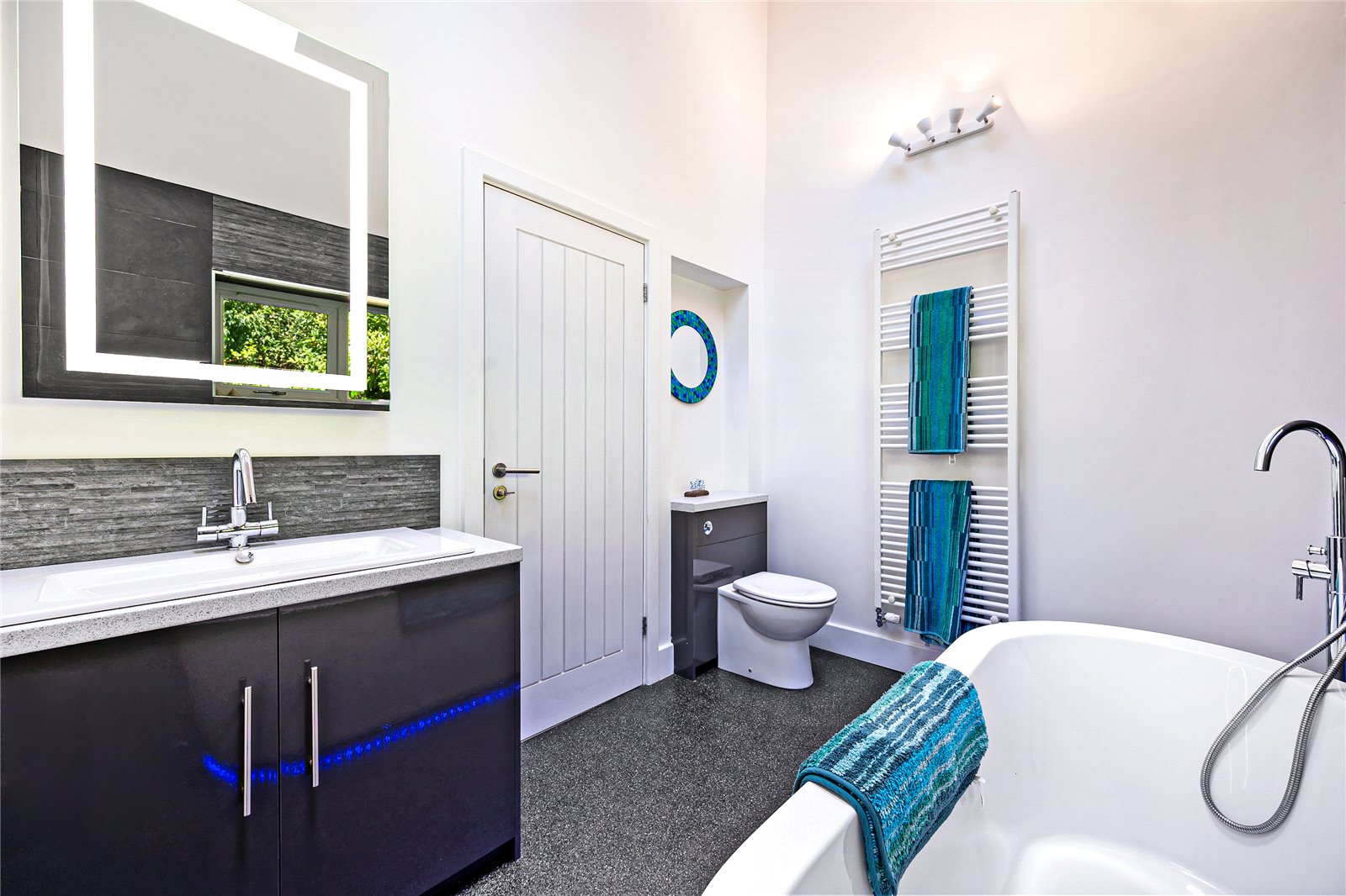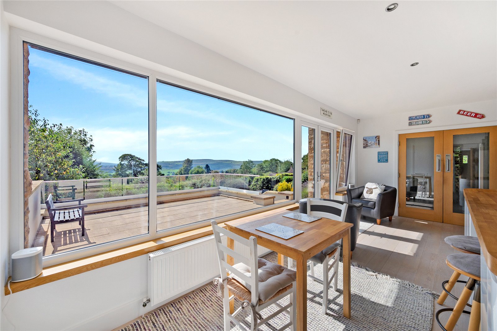 Extending to over 2680 sqft of accommodation, this superb home which has been fully renovated by the current owners comprises; a lovely central entrance hall which provides access to all the principal rooms and features the original sweeping staircase and a log burner, a wonderful formal living room with an electric fire and a large window showcasing the incredible views to the front. There is also a second versatile reception room which could be used as a home office, playroom or gym and a great size utility room with ample storage cupboards, access to the side of the property and plumbing for a washing machine with further access to a ground floor three piece bathroom. From the aforementioned hallway, is a set of double doors that lead into the delightful open plan family kitchen with solid wood worktops and integrated appliances such as; a dishwasher, and a Cuisinemaster electric oven with a gas hob and a Franke instant hot water tap. This particular room has beautiful stained glass windows and double doors leading out on to the terrace to enjoy the countryside views beyond.