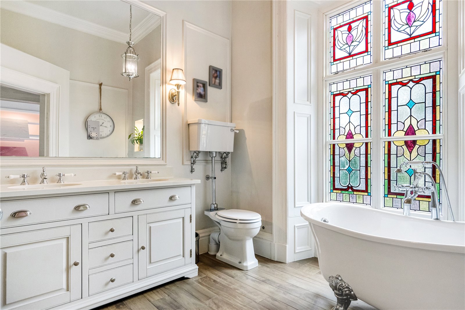 This truly stunning semi-detached four-bedroom home is a rare gem, blending exceptional period charm with modern luxury, all set within approximately one acre of beautifully landscaped grounds. Every corner of this property exudes character, from the spacious reception room with original wood flooring, intricate panelling, and a working fireplace, to the exquisite original coving throughout the reception rooms and bedrooms.