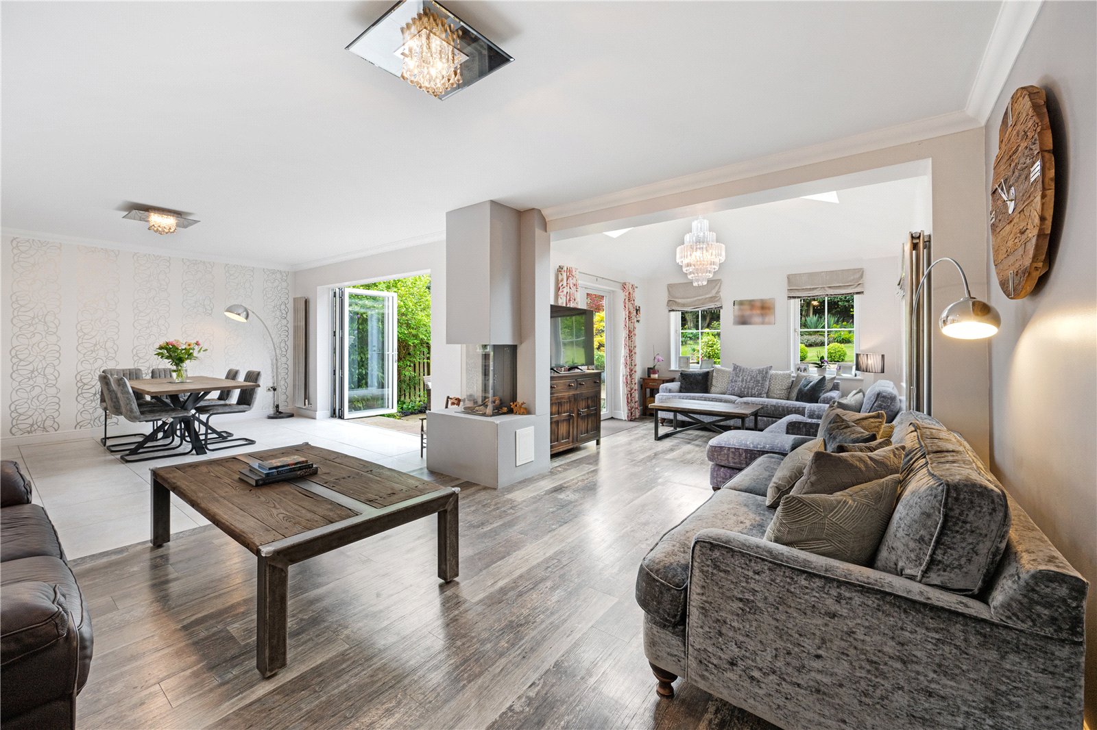 Upstairs, an elegant galleried landing gives way to five generous double bedrooms. The luxurious main suite overlooks Beckside Gardens and features a dressing area with four double wardrobes and a spacious en-suite with a wet room shower and bath. The guest suite, positioned to the rear, includes two fitted double wardrobes and its own en-suite shower room.