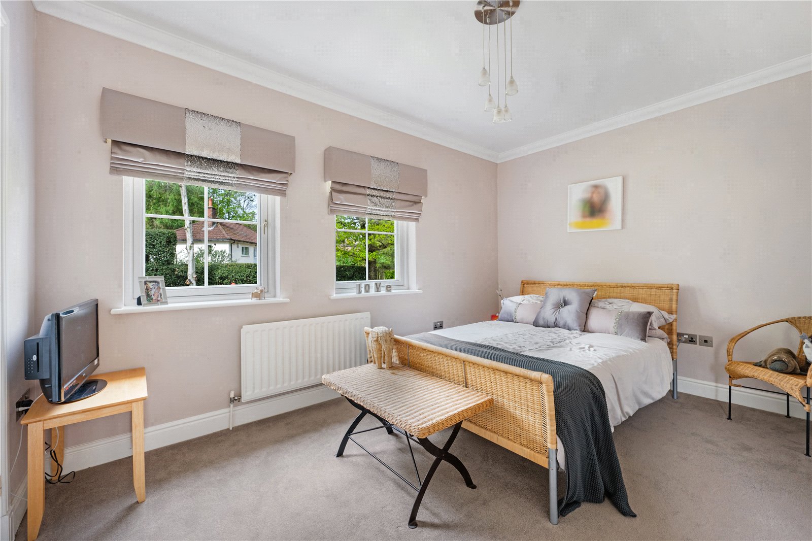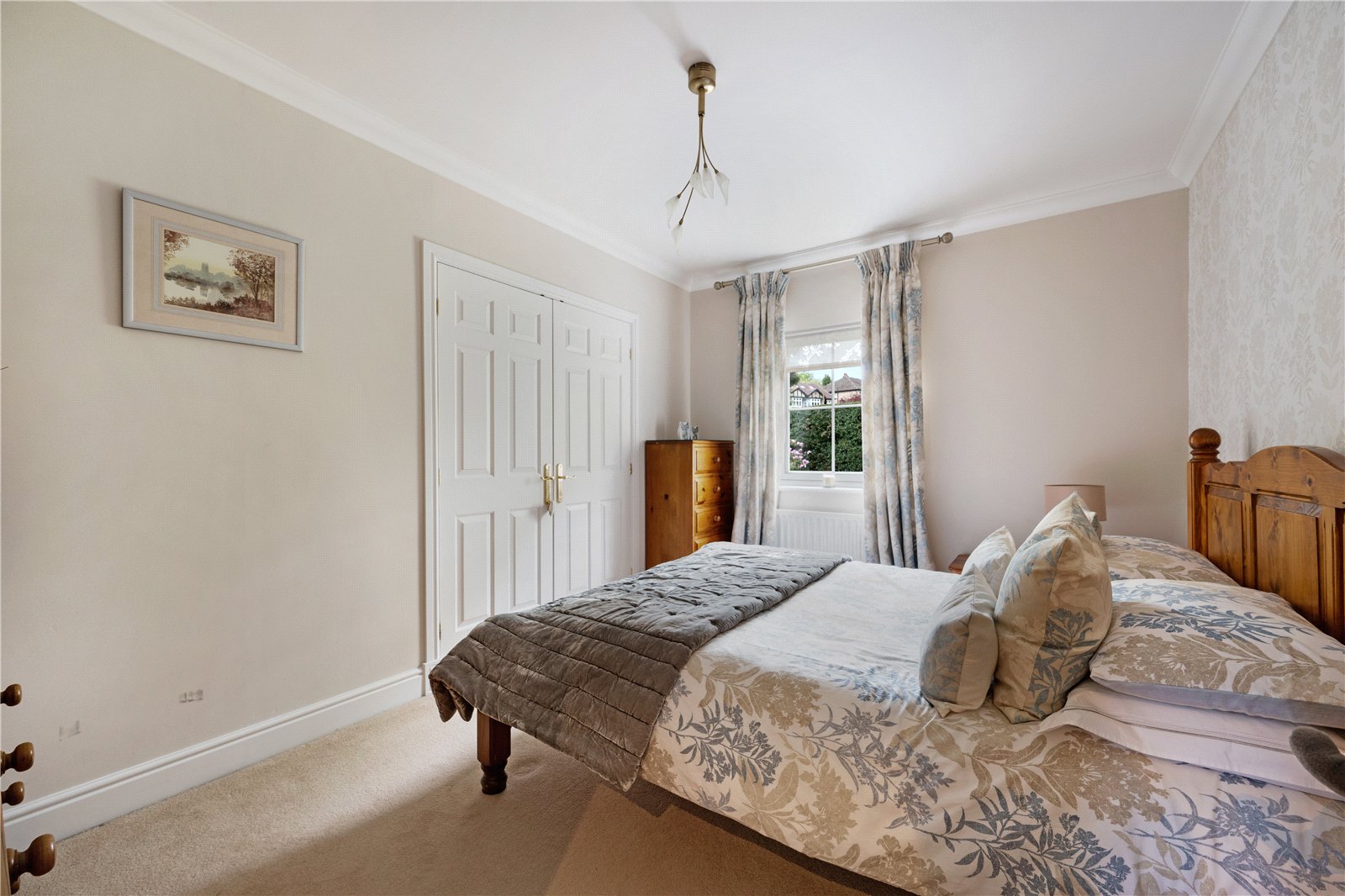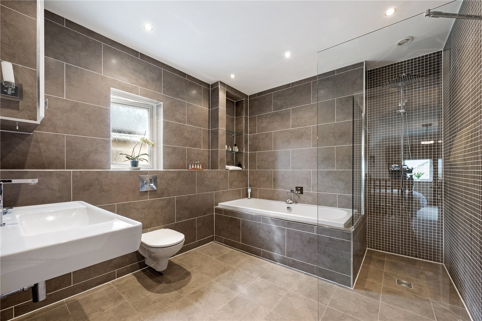 Three additional double bedrooms, two with built-in wardrobes share a stylish house bathroom complete with underfloor heating, a large bath, and walk-in shower. A thoughtfully designed study nook on the landing, with bespoke fittings and views over the park, provides an ideal workspace.