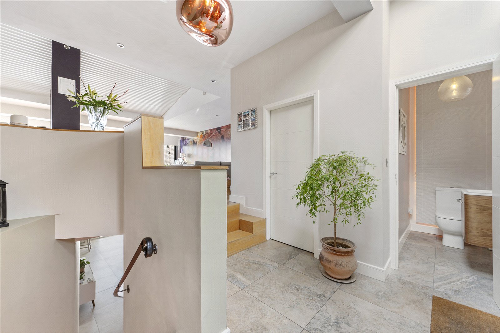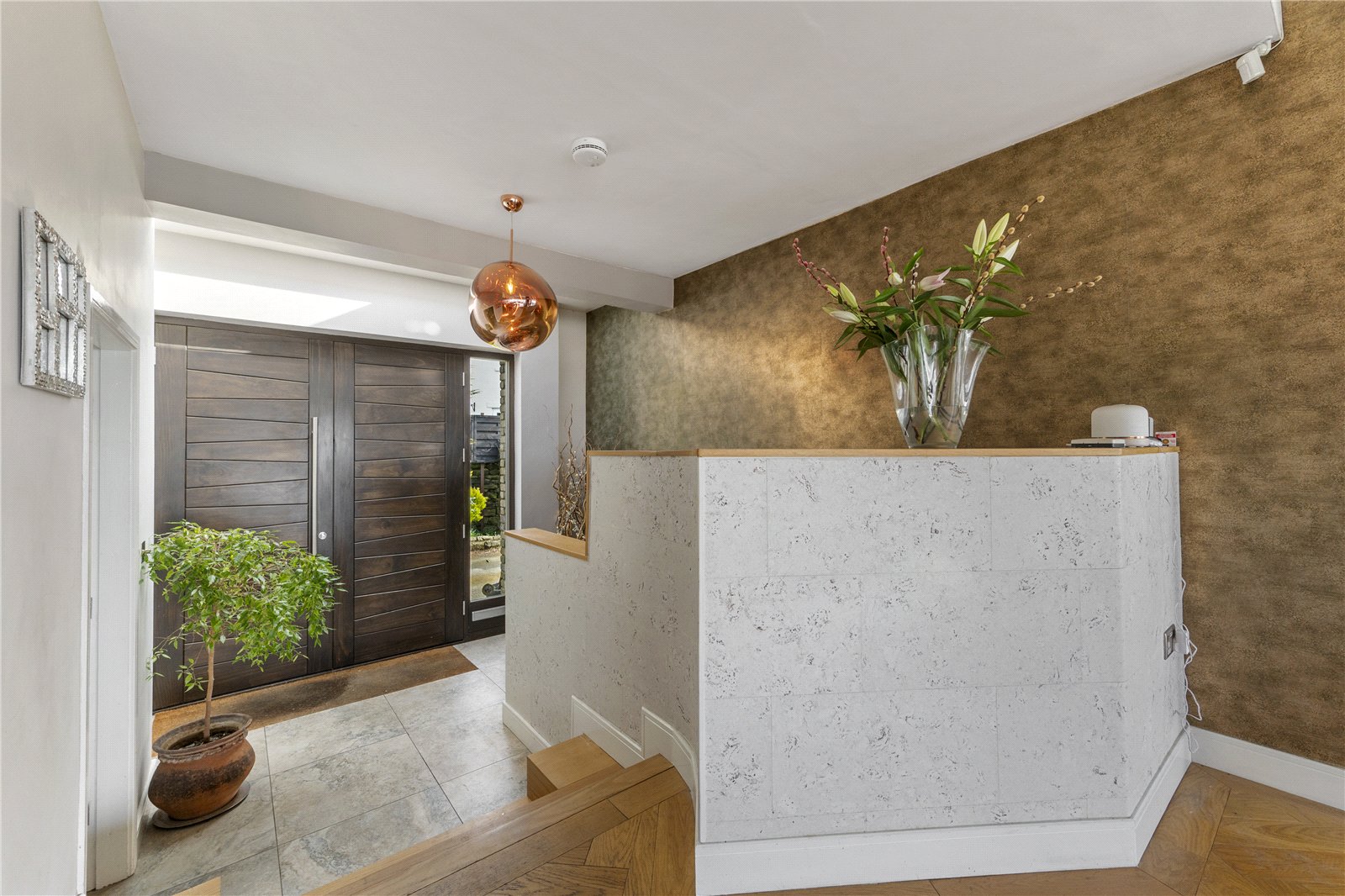 On approach to this stunning home, you are greeted with a welcoming entrance hallway with Accoya entrance doors onto the mezzanine floor with Italian porcelain tiled flooring and a skylight above. There is also a guest w.c. with a feature wall, LED lighting and a fitted two-piece suite with a “floating” wash hand basin. Furthermore, there is a cloaks/boot room with fitted shelves and storage.