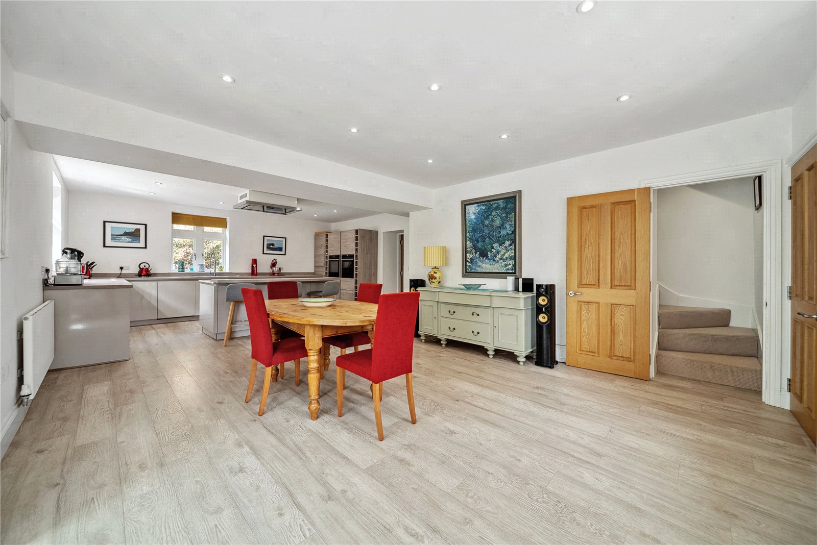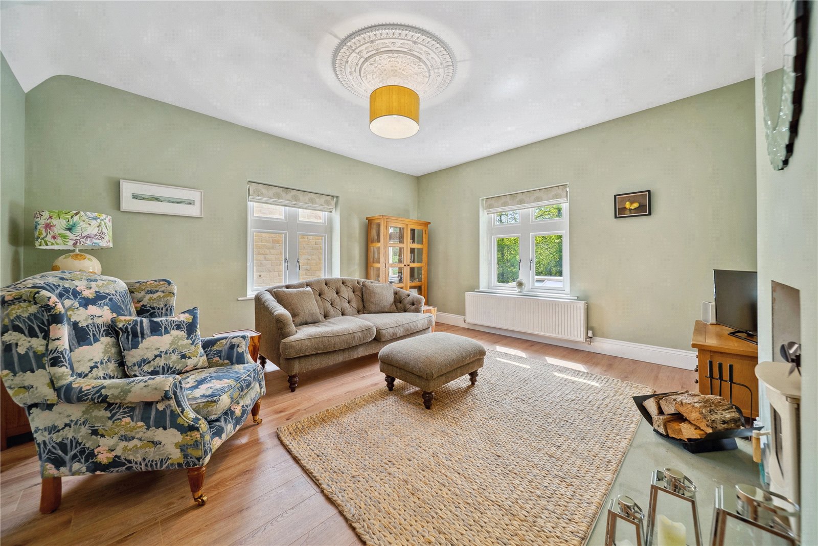 Throughout the home, generous reception spaces cater to both entertaining and quiet retreat. The formal living room is a serene haven, flooded with natural light and warmed by a Dean Forge wood-burning stove, a perfect setting for both gatherings and quiet evenings.