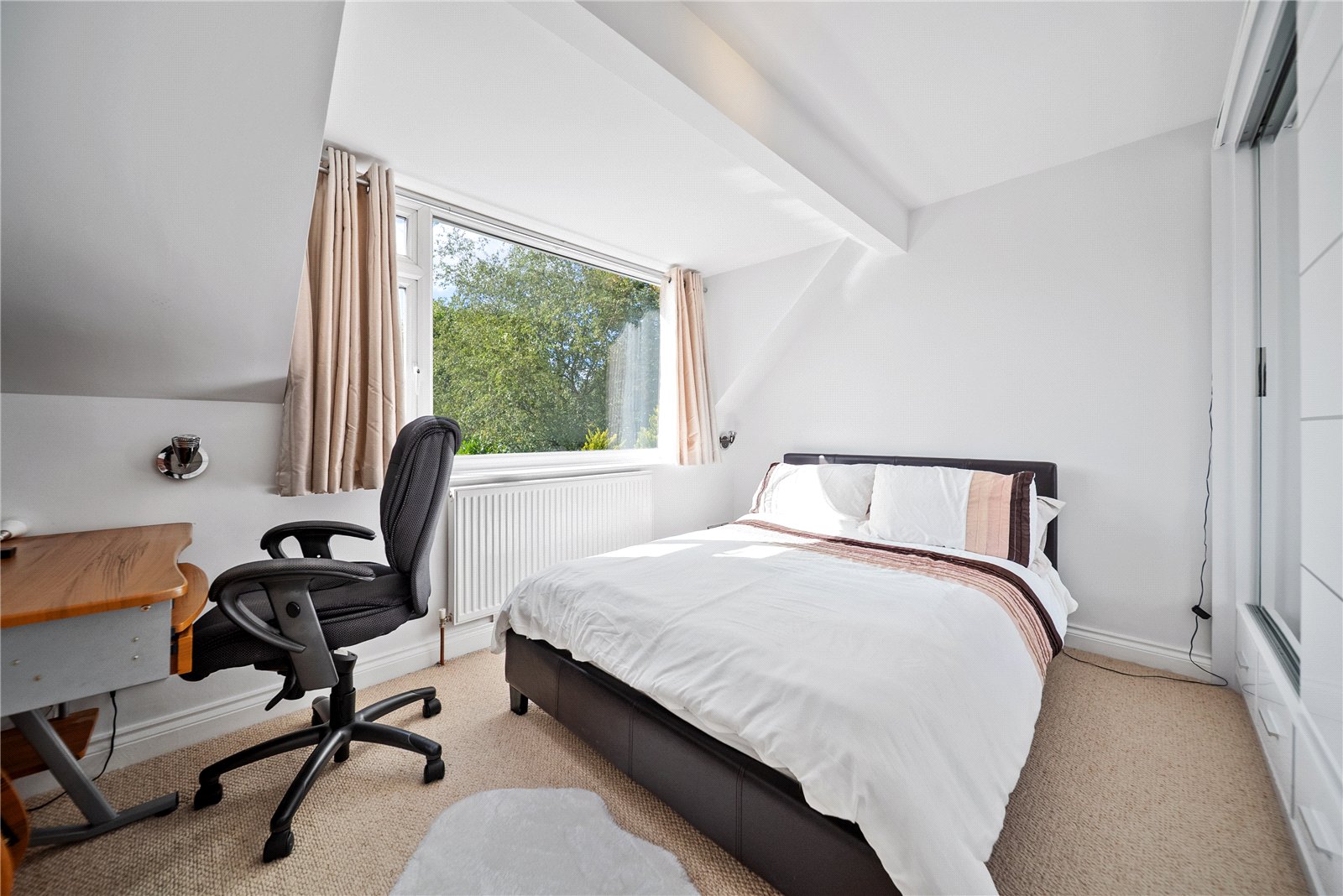 The property occupies a generous plot which is set back from the roadside by an attractive front garden, and the rear garden has been much improved by the current owners, with a tiered terrace ideal for BBQ's and summer entertaining, lawn with central water feature and balustrade, and again enjoys pleasant woodland views beyond. This home also features uncommonly generous grounds: an almost one-acre south-facing private garden, offering abundant scope for outdoor living, landscaping, and family use.