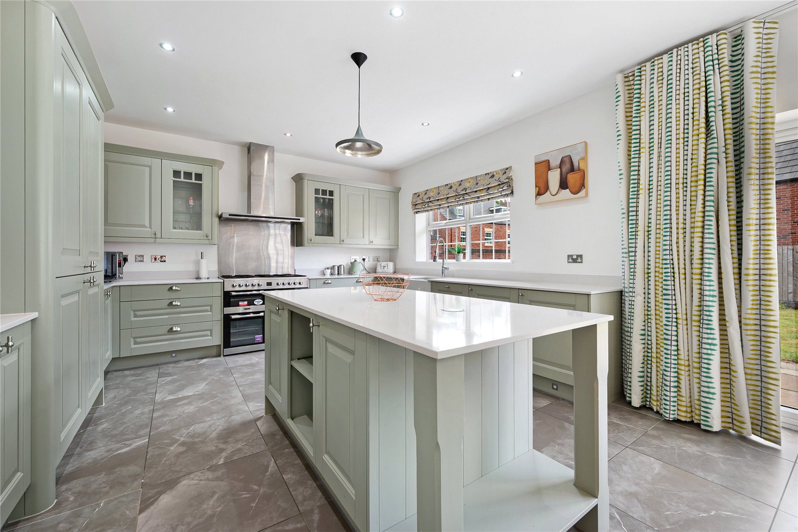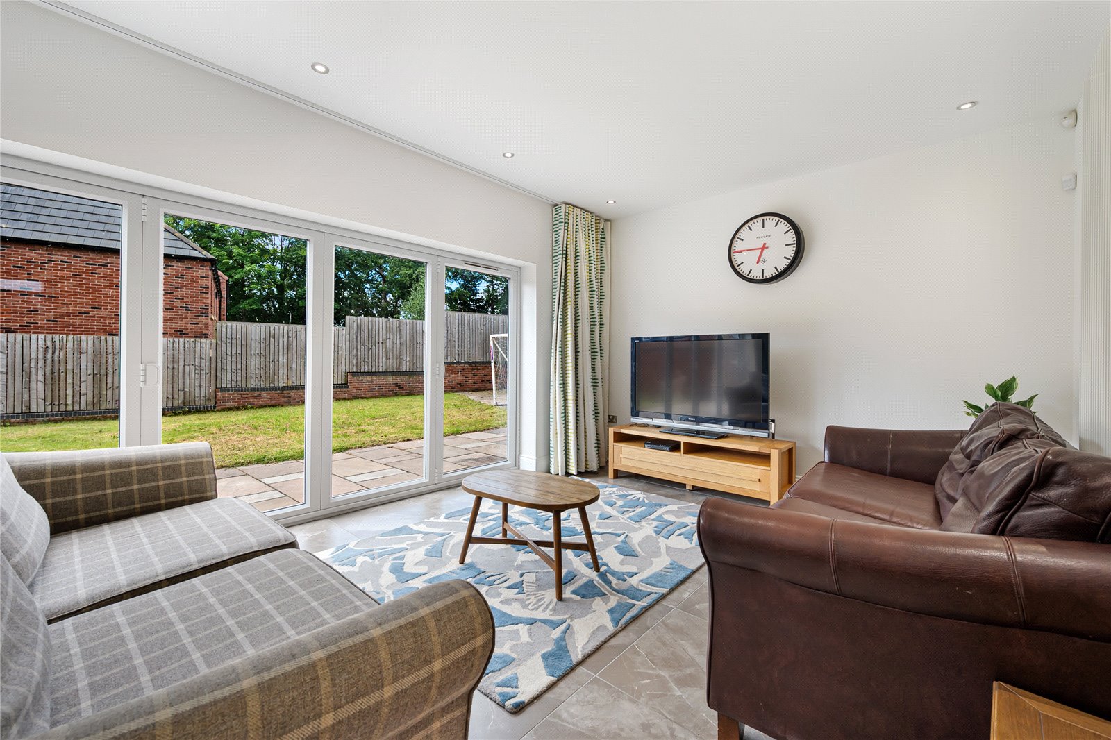 The heart of the ground floor is undoubtedly the generous open-plan kitchen and living area, accessed through double doors. This expansive space is perfect for both family gatherings and entertaining guests, with a seamless flow to the garden at the rear through bi-folding doors.