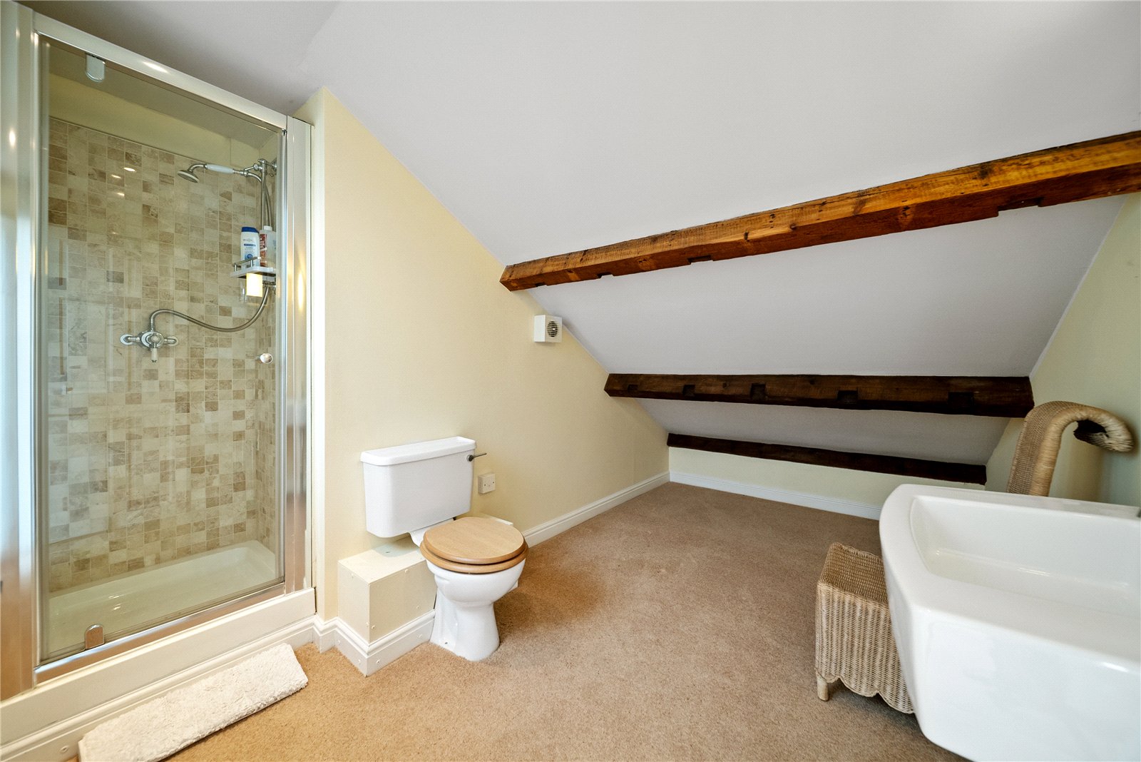 On the second floor are bedrooms five and six, both doubles with exposed beams, fireplaces, and sash windows. A shared shower room serves this floor, along with access to two large loft storage areas.