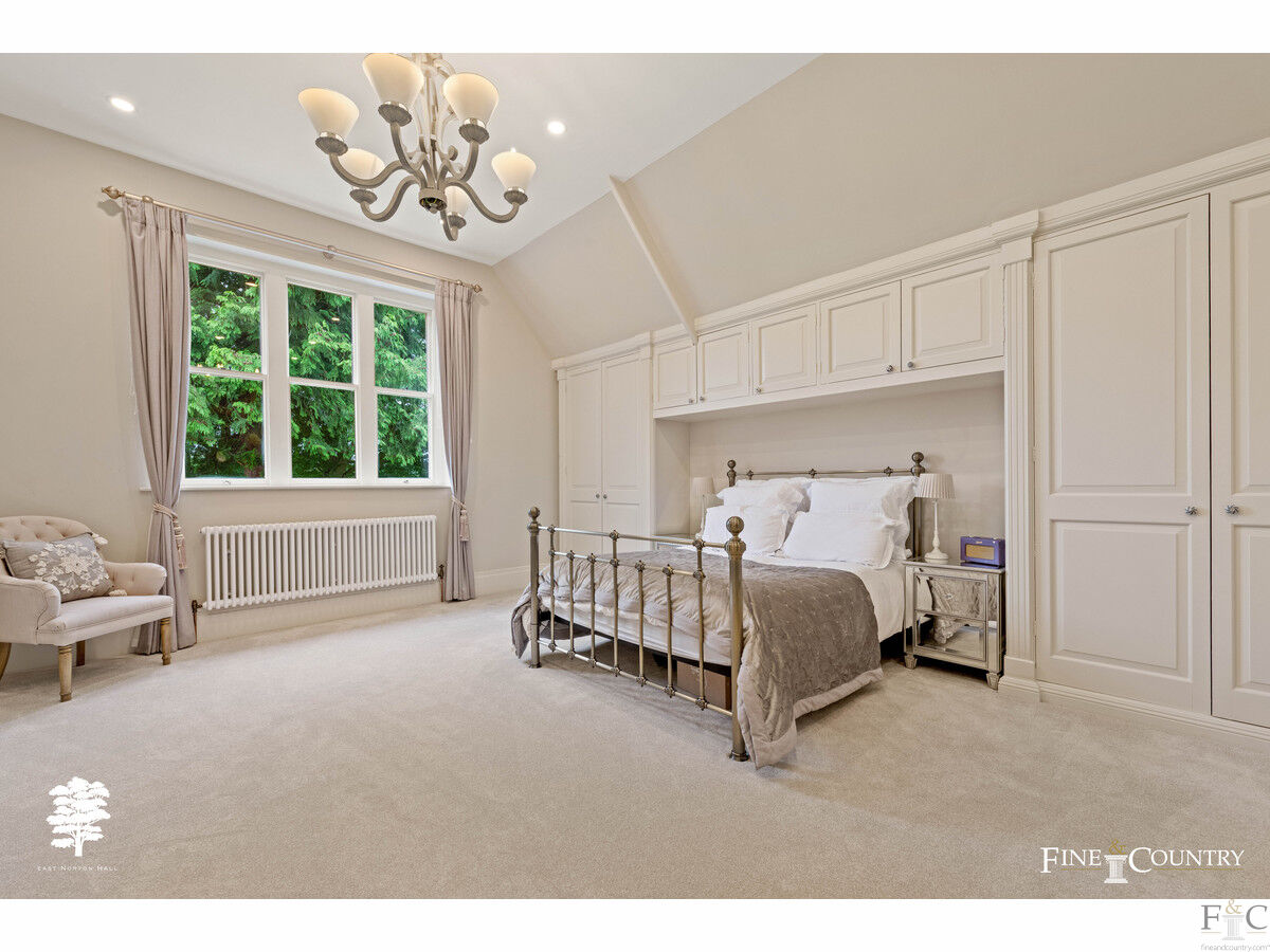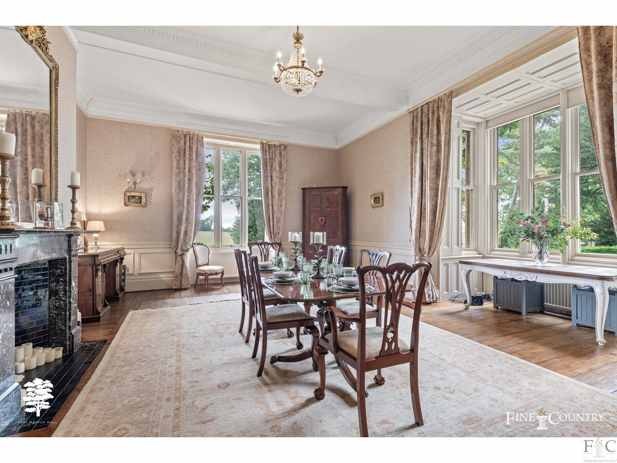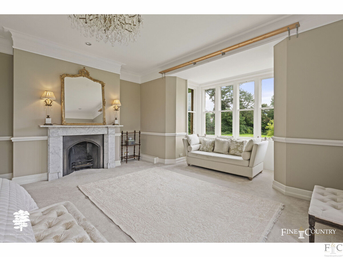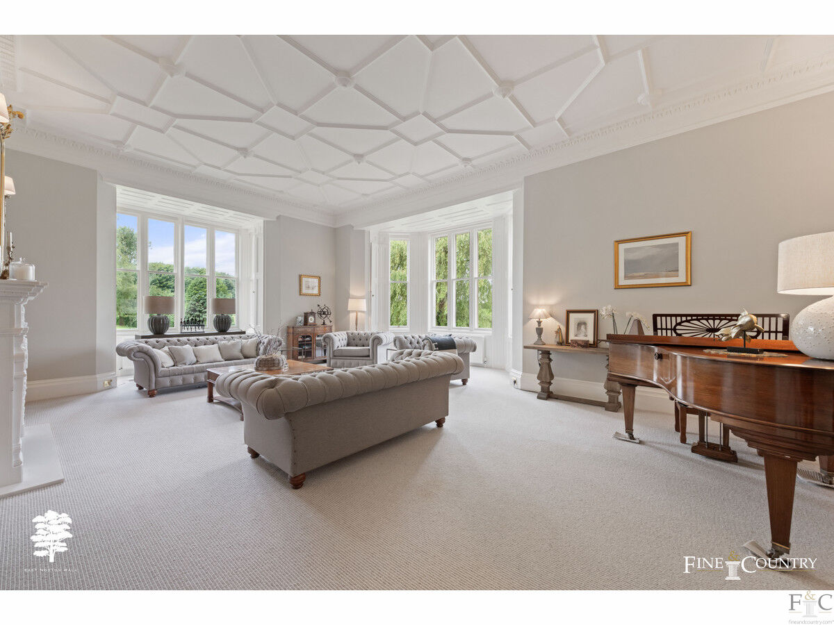 The setting is most serene perfectly suiting such a high calibre, elegant residence. Expansive lawns on every aspect provide lovely vantage points to admire the property. A curved ha ha wall bordering the lawn to the northwest elevation, where a simple quatrefoil parterre surrounds a formal elliptical pond, also gives uninterrupted views across the undulating landscape.