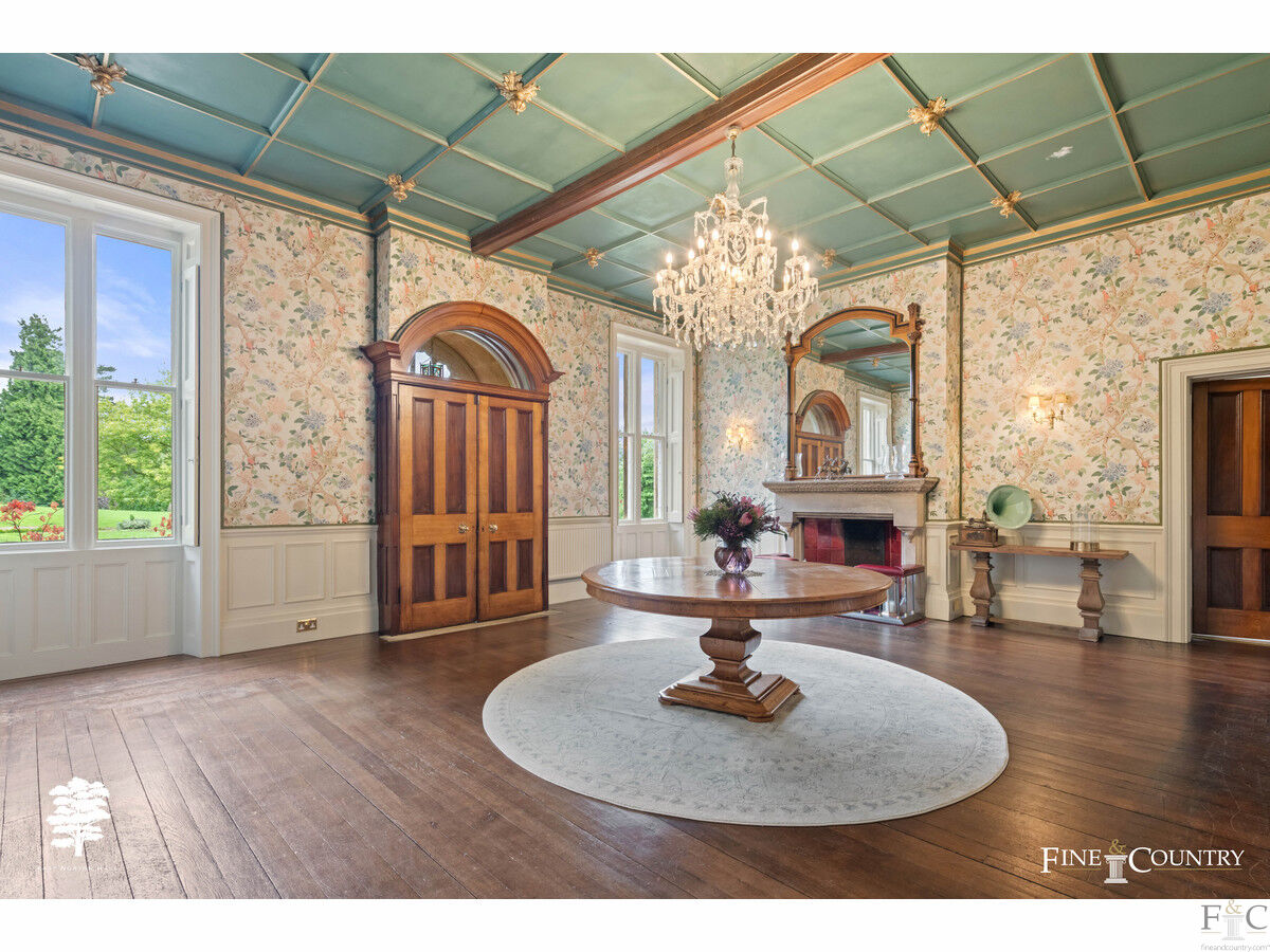 - Two Reception Hallways, Drawing Room, Dining Room, Billiard Room, Study