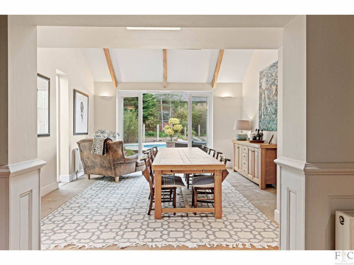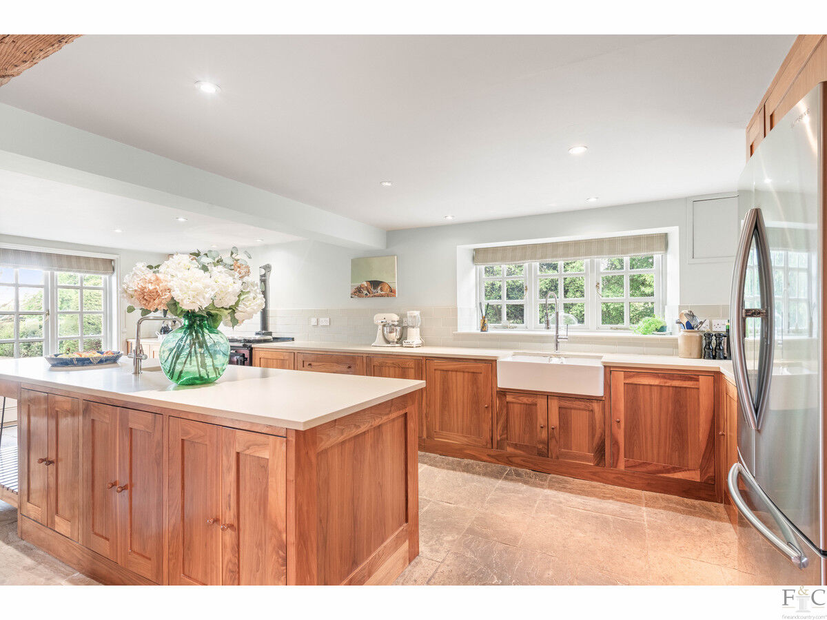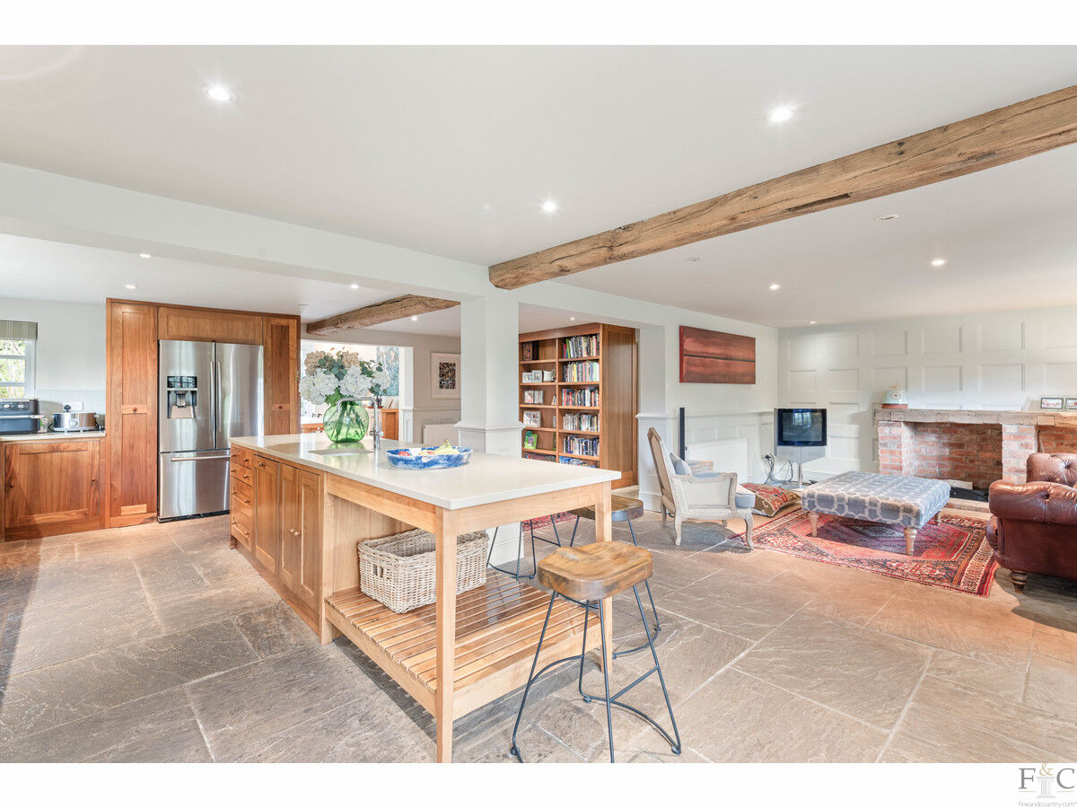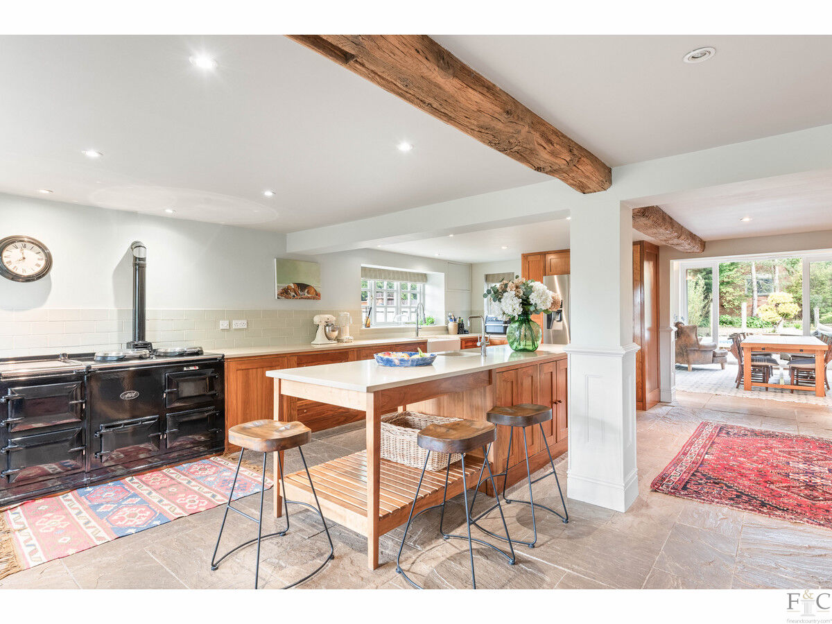 - Beautiful living, dining, kitchen with bespoke cabinetry and an AGA