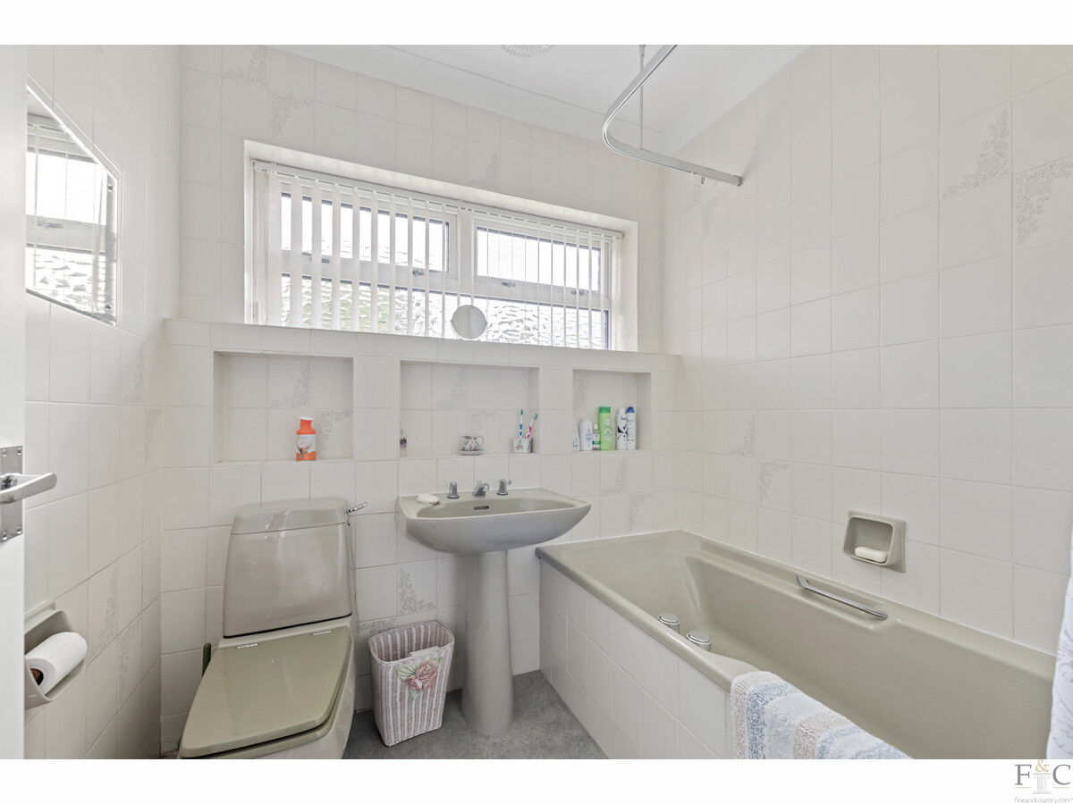 There are three light, airy and spacious bedrooms. They are all carpeted, well maintained and have been fitted with wardrobes. The largest primary bedroom looks to the front of the bungalow.