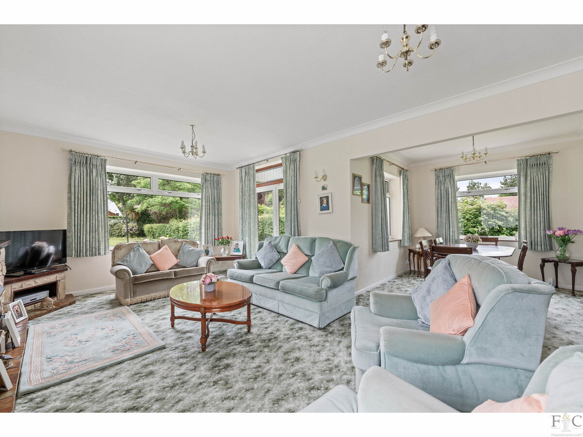 ‘Surrounded by mature gardens, a spacious bungalow with exclusive appeal and development potential.’