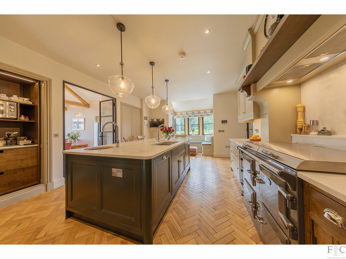 - Bespoke Fraser James kitchen with Everhot range, butler’s pantry, and sociable island