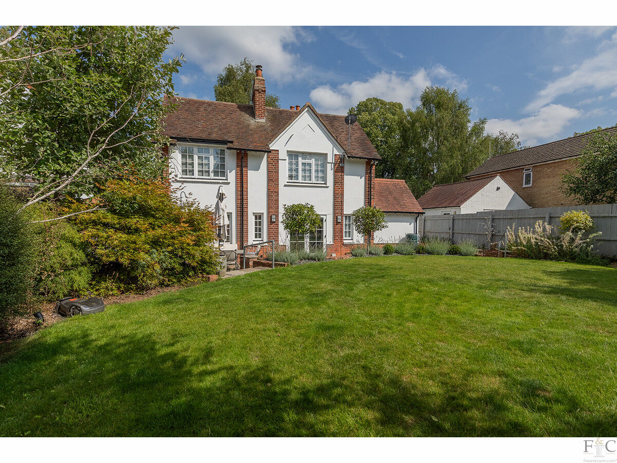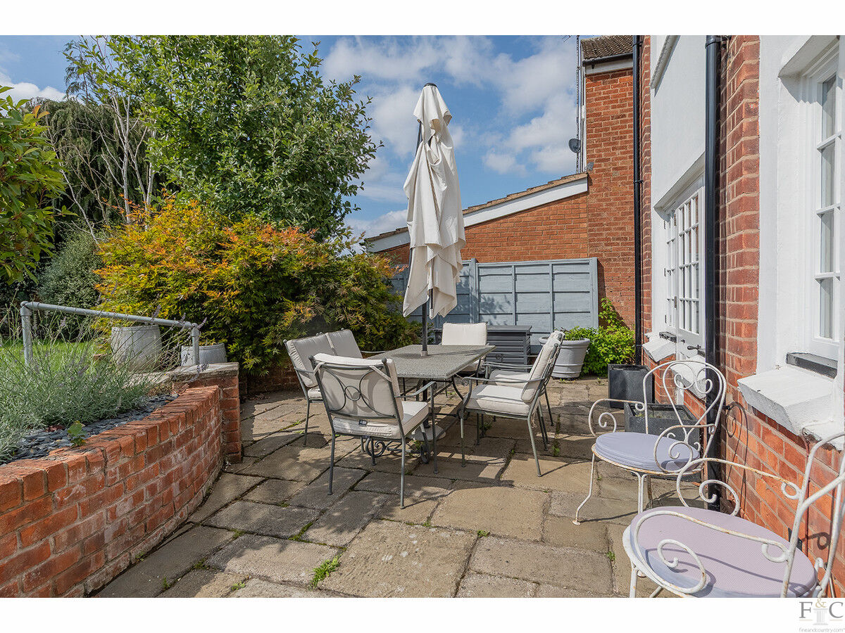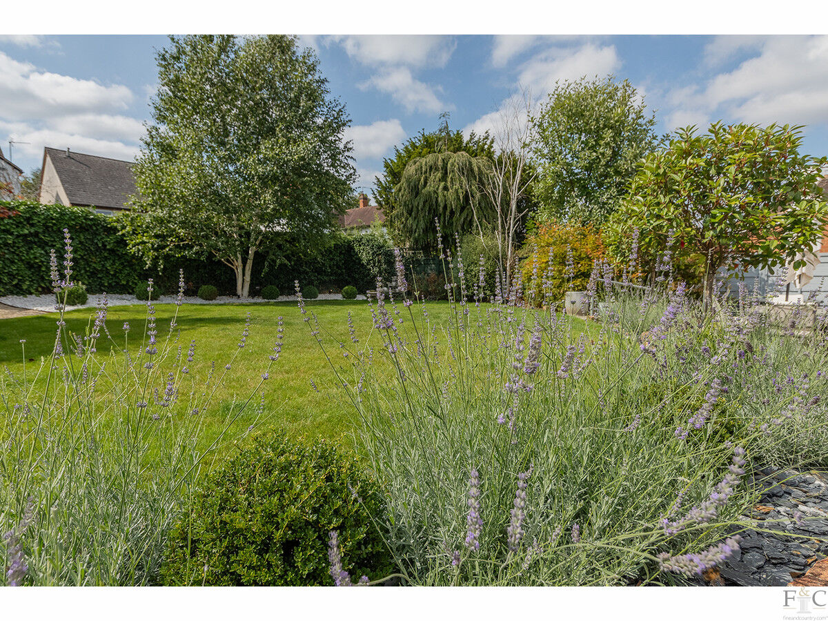 The rear garden is a private sanctuary — an immaculately landscaped haven with mature trees, established borders, and vibrant seasonal planting. A stone-paved terrace provides the perfect stage for al fresco dining, while a raised lawn invites play and relaxation in equal measure.