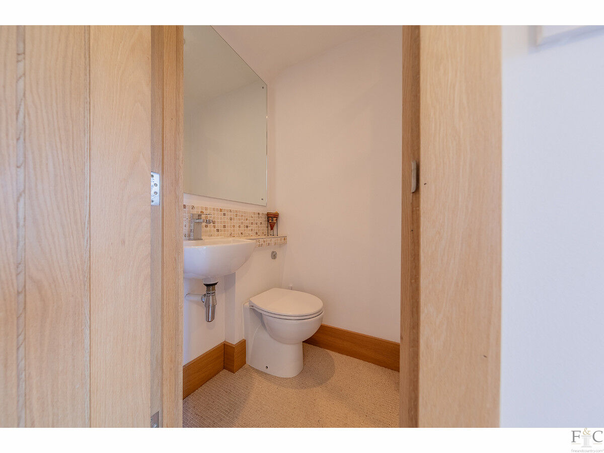 The bedroom across the landing shares similar views, while bedroom three is to the front. This double aspect room looks to the village green, renowned for its preservation as an original feature of the village landscape and protected by residential ownership to remain unchanged. The remaining fourth bedroom is fitted with integral wardrobes and has an ensuite consisting of walk in shower, toilet and vanity unit.