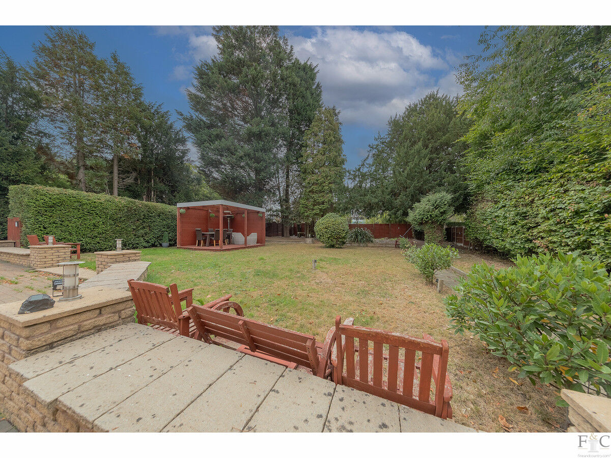 Outside, this home is cradled in privacy. To the front, the sweeping drive allows for abundant parking, with manicured lawns and a pergola inviting alfresco moments. To the rear, a secluded garden offers sanctuary, shielded from the world.