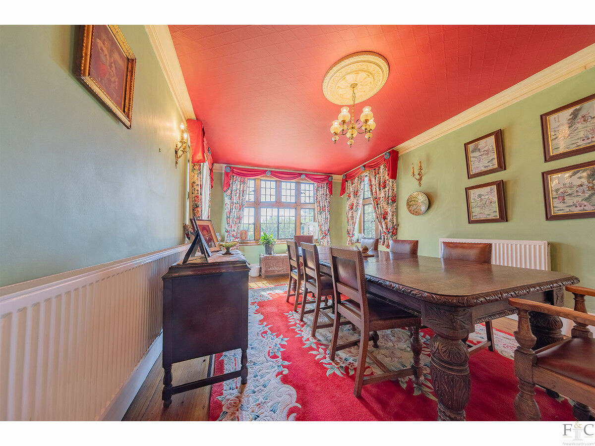 Your arrival is met with a recessed arched porchway, framing the original front door and setting the tone for what lies beyond. Step into the impressive entrance hall, where character radiates from every corner — high ceilings, warm wooden floors, and a sense of space that flows freely from room to room. Under-stair storage and a discreet cloakroom ensure practical needs are effortlessly met.