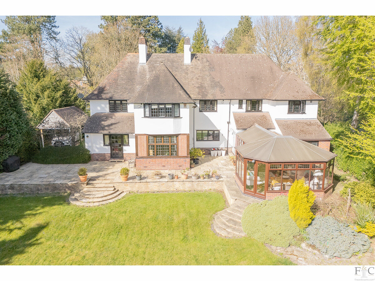 Outdoors, this home continues to impress. The gated block-paved driveway offers plentiful parking and access to both a tandem garage and a secure car port. To the rear, the south-facing garden is a sanctuary of greenery and light, featuring a raised stone terrace, perfect for al fresco dining, and gently stepped lawns enclosed by mature hedgerows and trees, offering complete privacy.