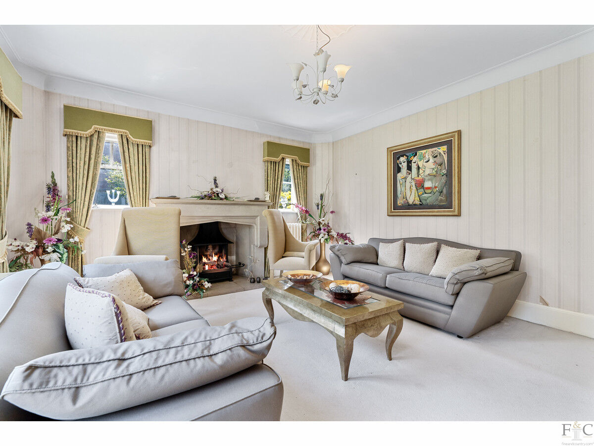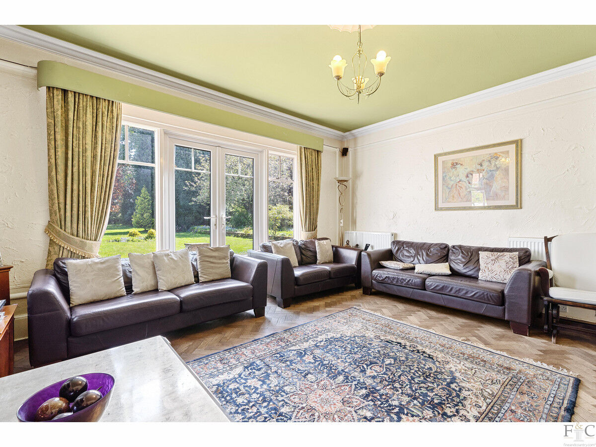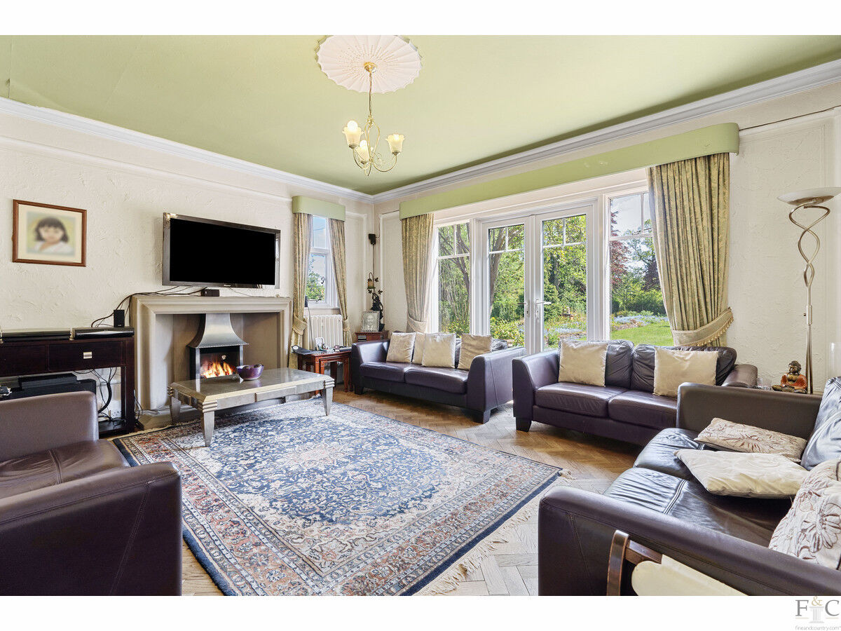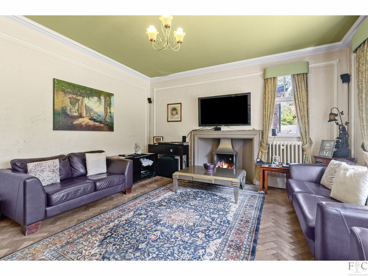 The sitting room is filled with light through dual aspect windows to the front and more french doors leading directly outside. Currently a more formal space, there is room for the most elegant of furniture and the neutral décor, feature fireplace and more original features evoke thoughts of grown up evenings filled with laughter.