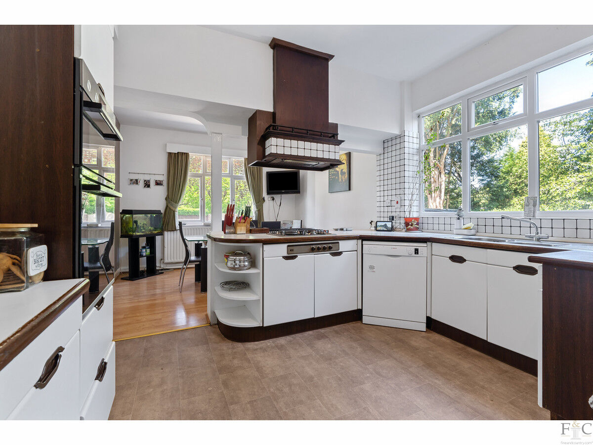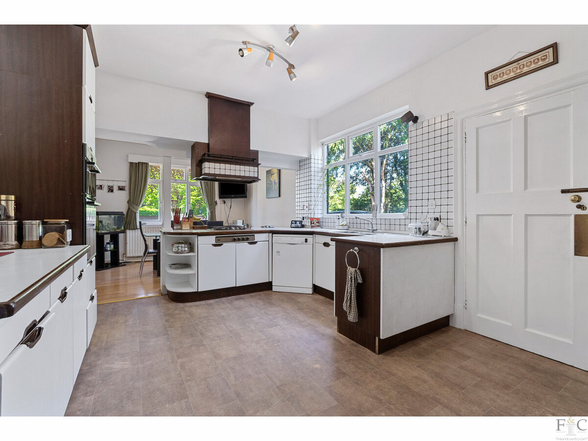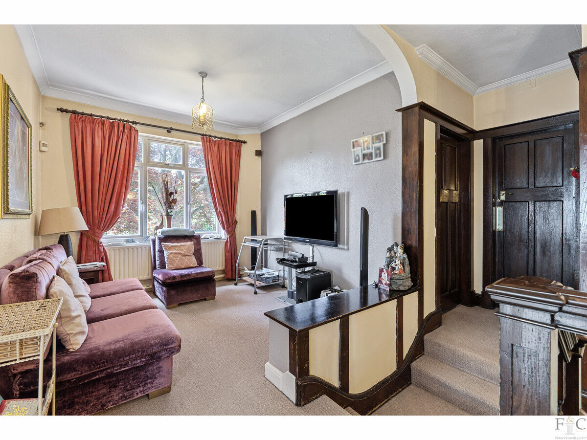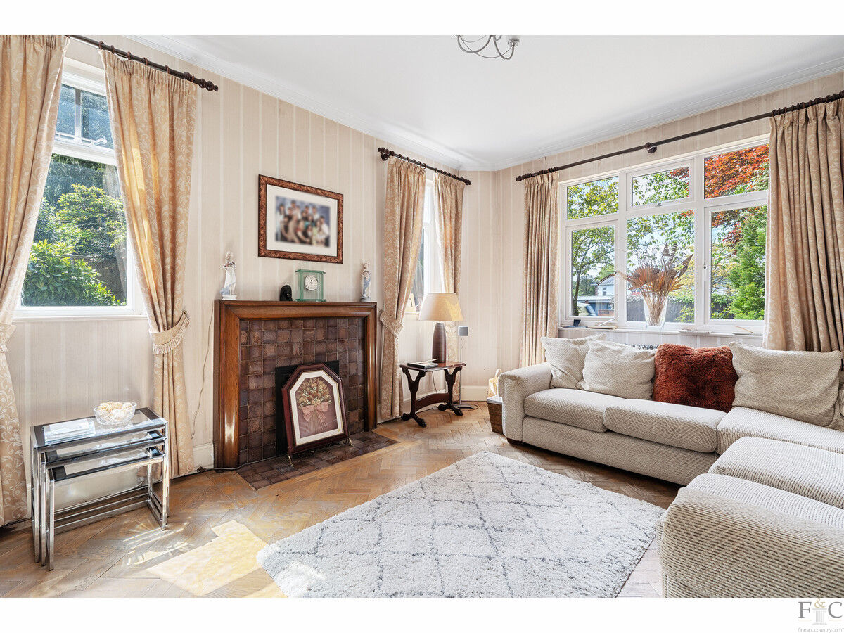 The sitting room is filled with light through dual aspect windows to the front and more french doors leading directly outside. Currently a more formal space, there is room for the most elegant of furniture and the neutral décor, feature fireplace and more original features evoke thoughts of grown up evenings filled with laughter.