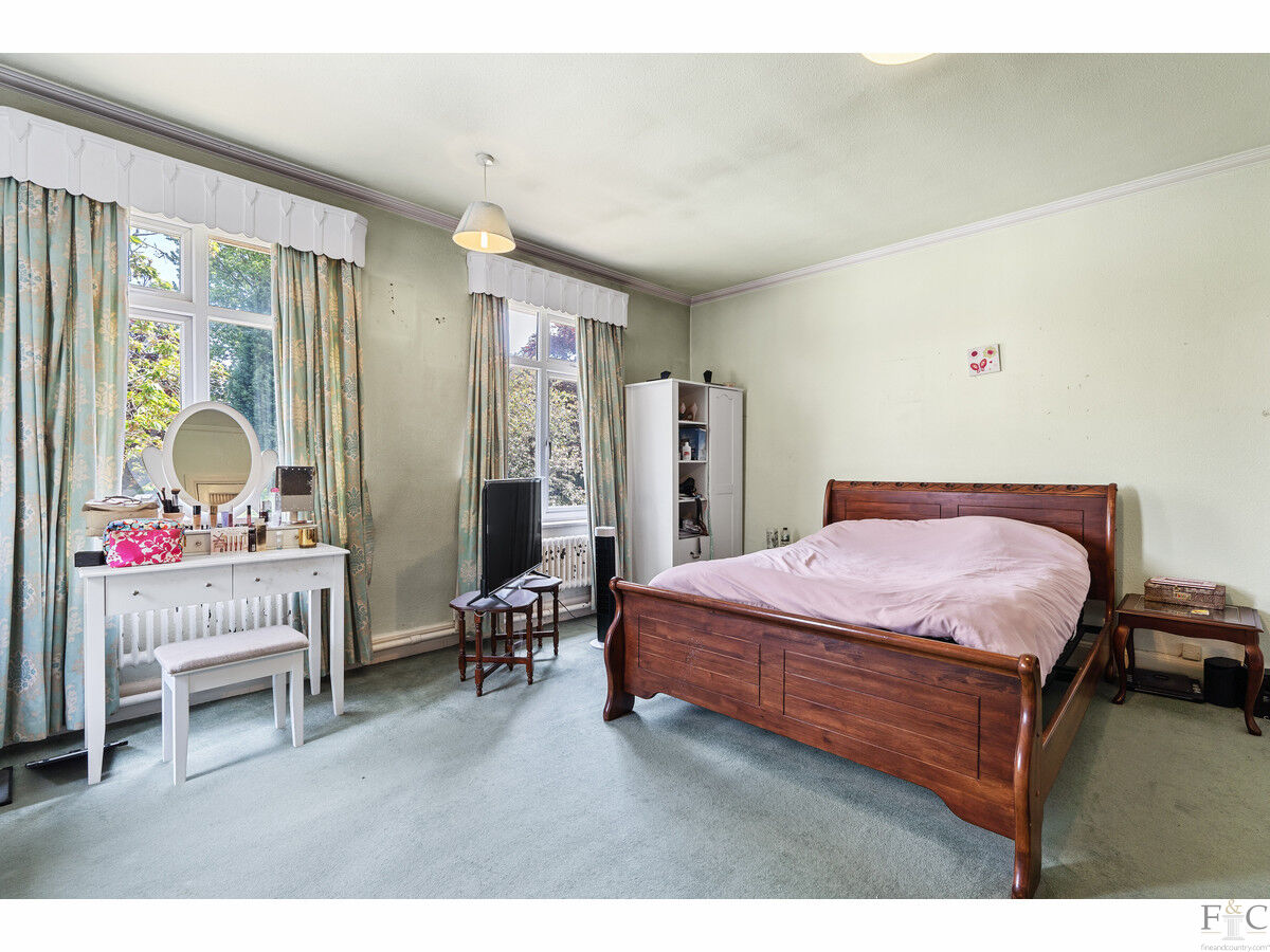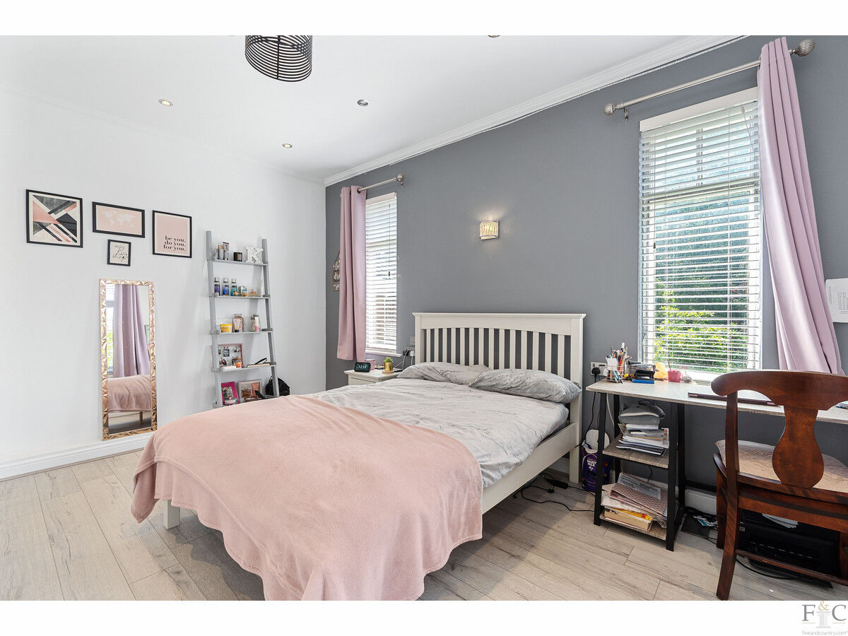 Open the original door to the spacious master bedroom where large dual aspect windows capture the views out over the rear garden and beyond. Natural décor and oodles of natural light create a great sense of space in this room. There is room for a big bed and furniture to match – lots of built-in storage is an added bonus here, as are more of those lovely period features.