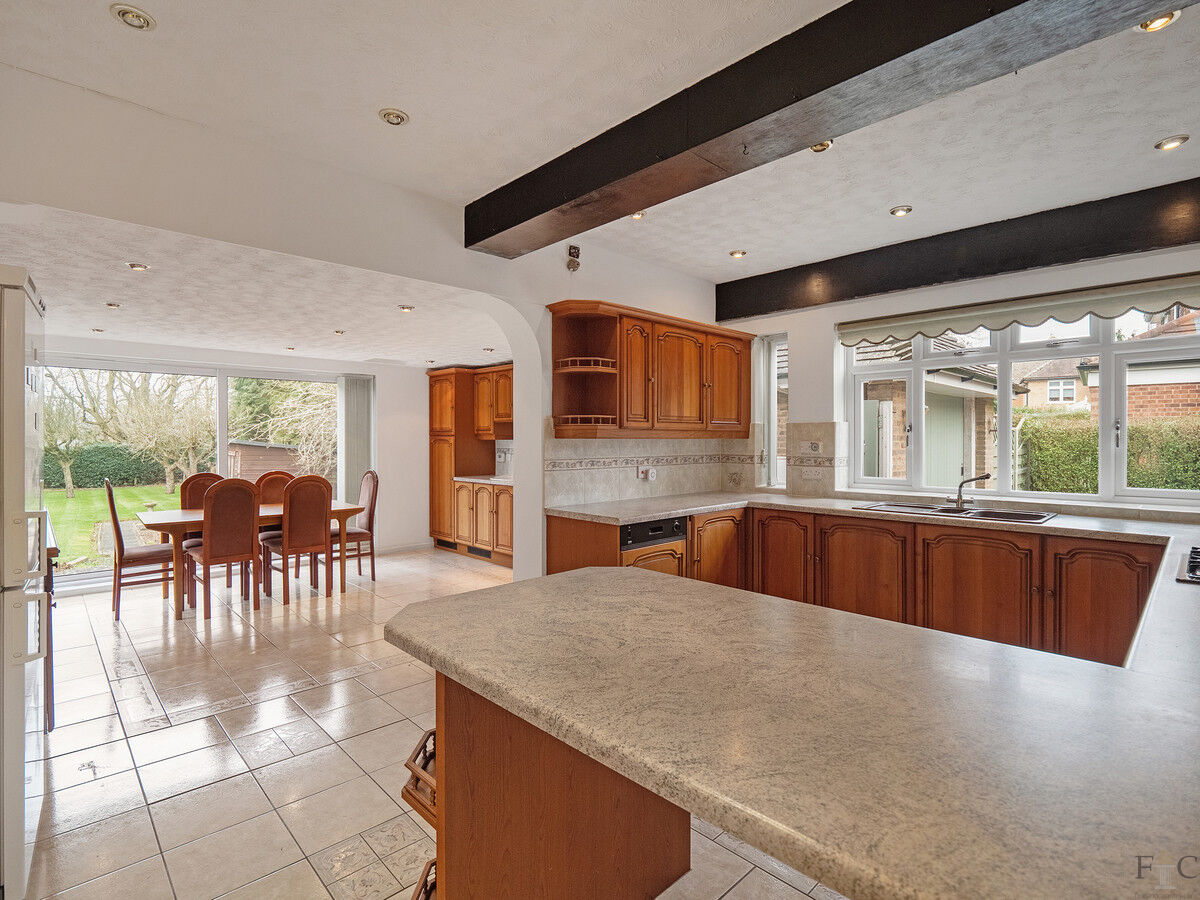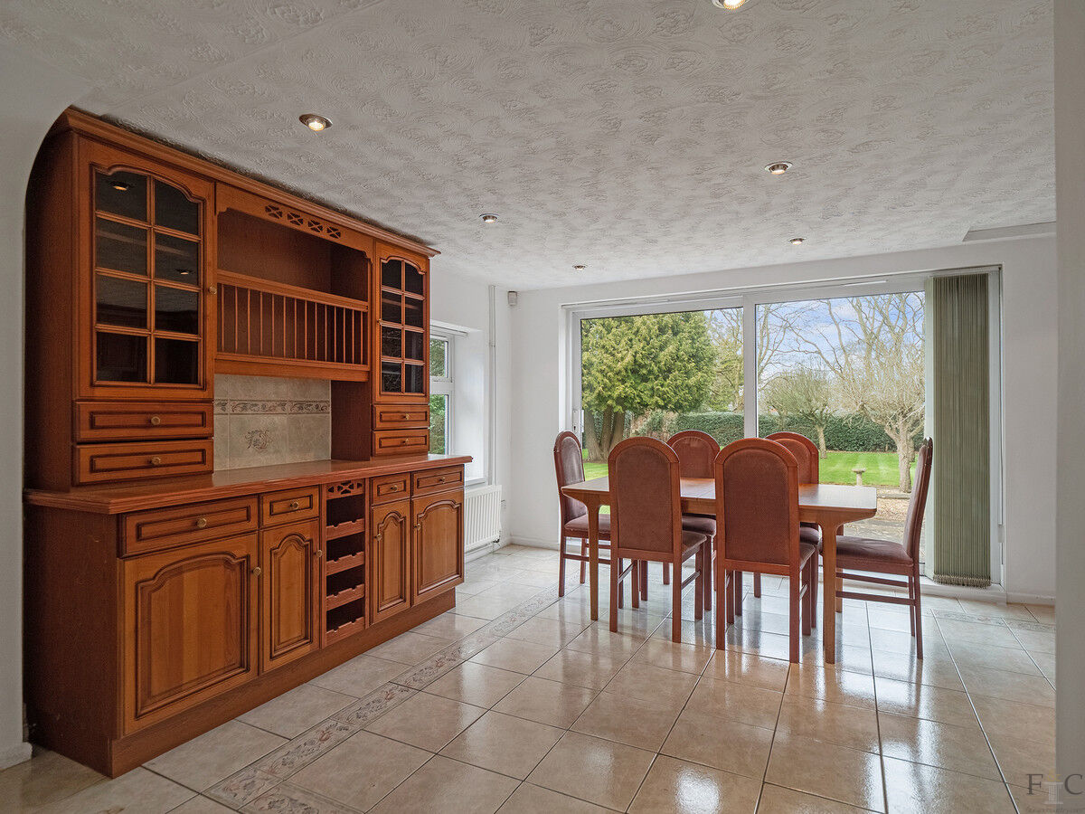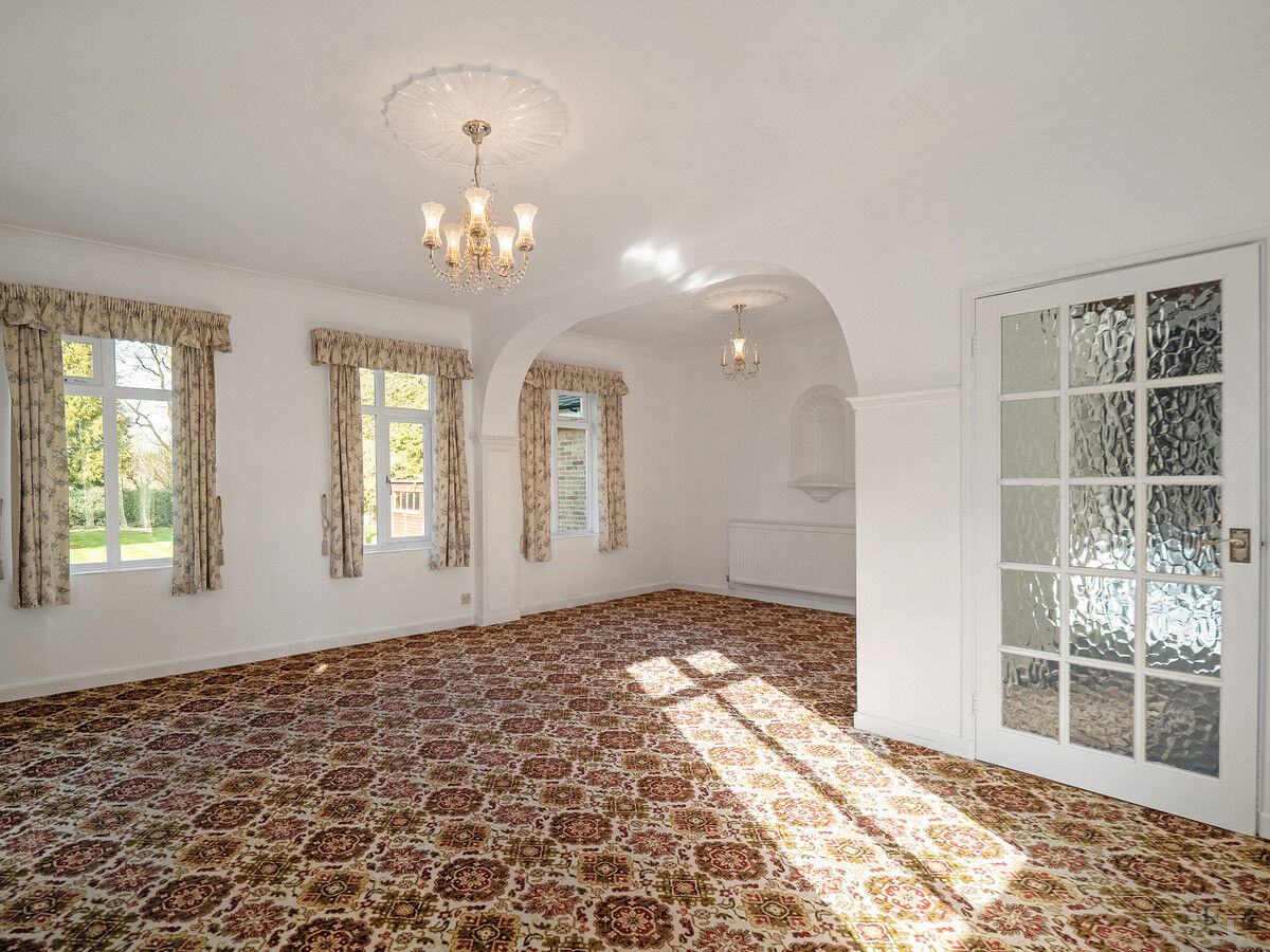 The bright, spacious living room with dual aspect windows overlooking the garden to the front and rear is filled with natural light. There is room for the biggest of sofas and the connecting doors to the conservatory (complete with underfloor heating) leading to a raised patio and gardens makes this a great multi-functional space.
