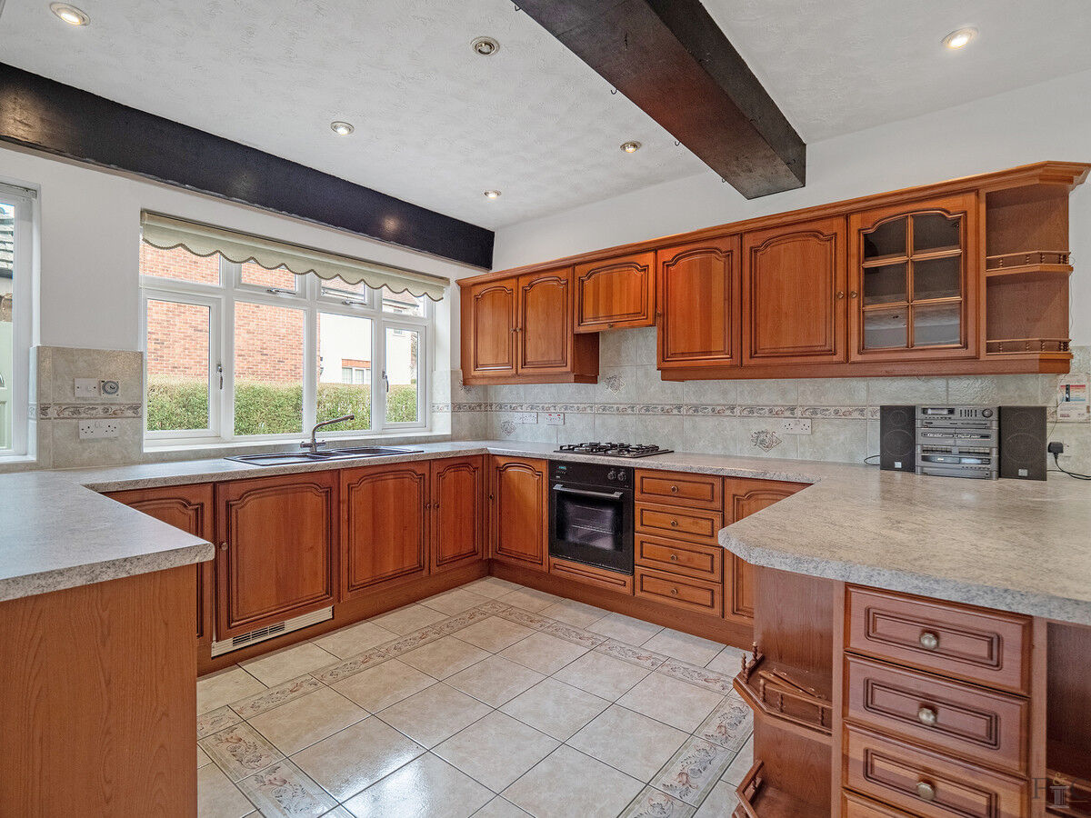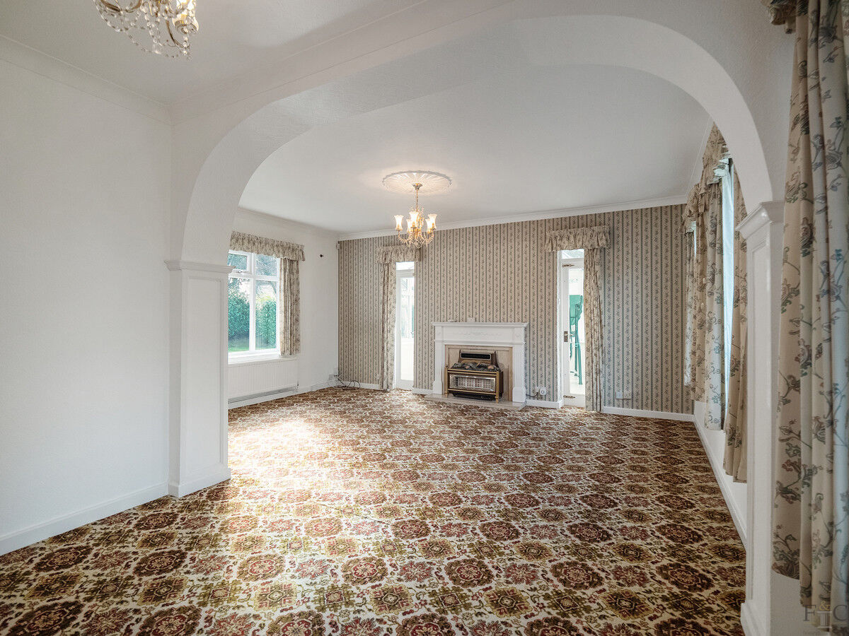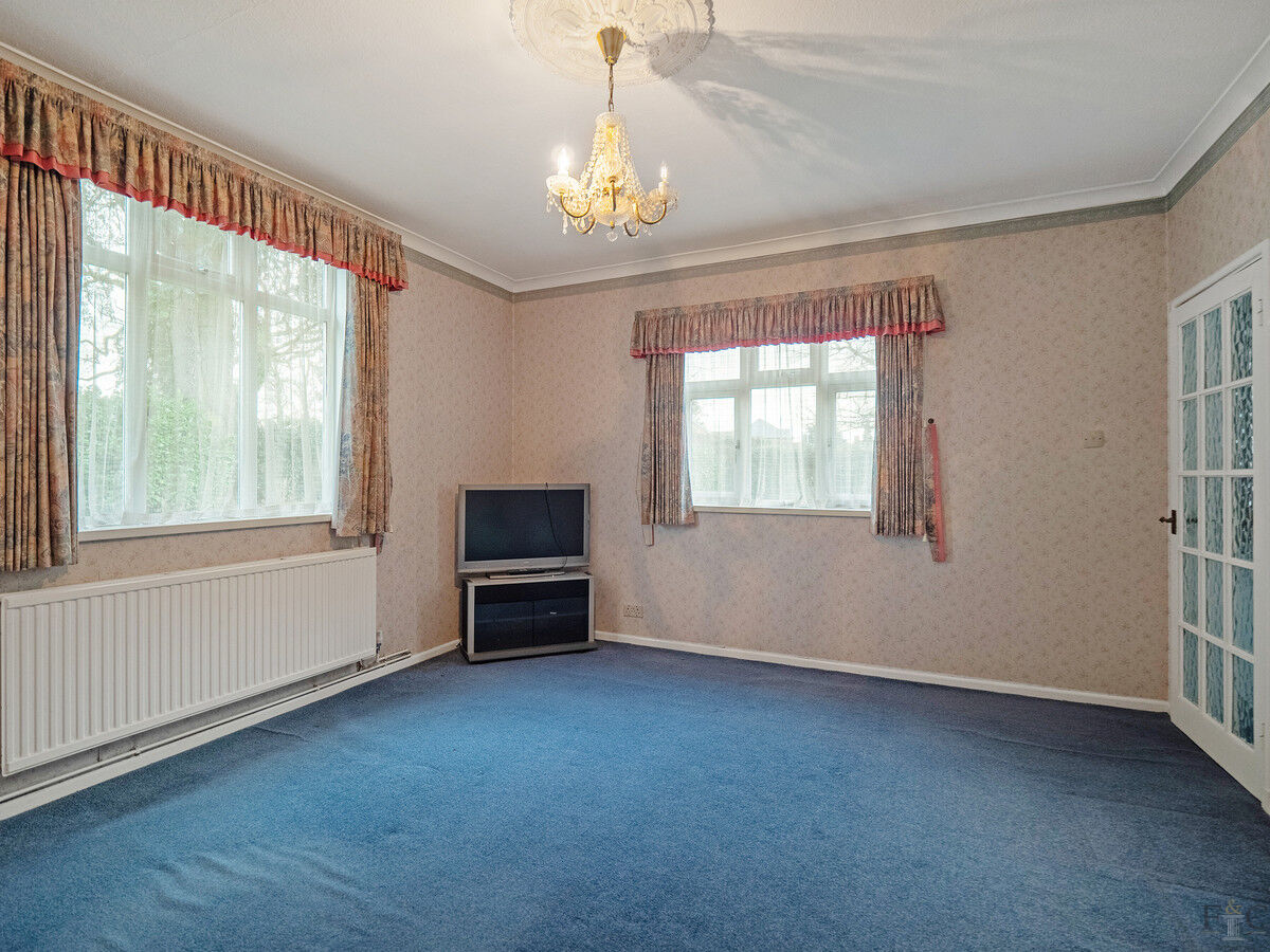 The bright, spacious living room with dual aspect windows overlooking the garden to the front and rear is filled with natural light. There is room for the biggest of sofas and the connecting doors to the conservatory (complete with underfloor heating) leading to a raised patio and gardens makes this a great multi-functional space.