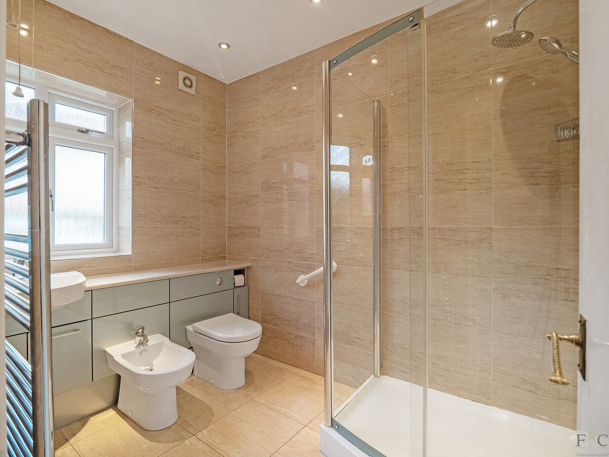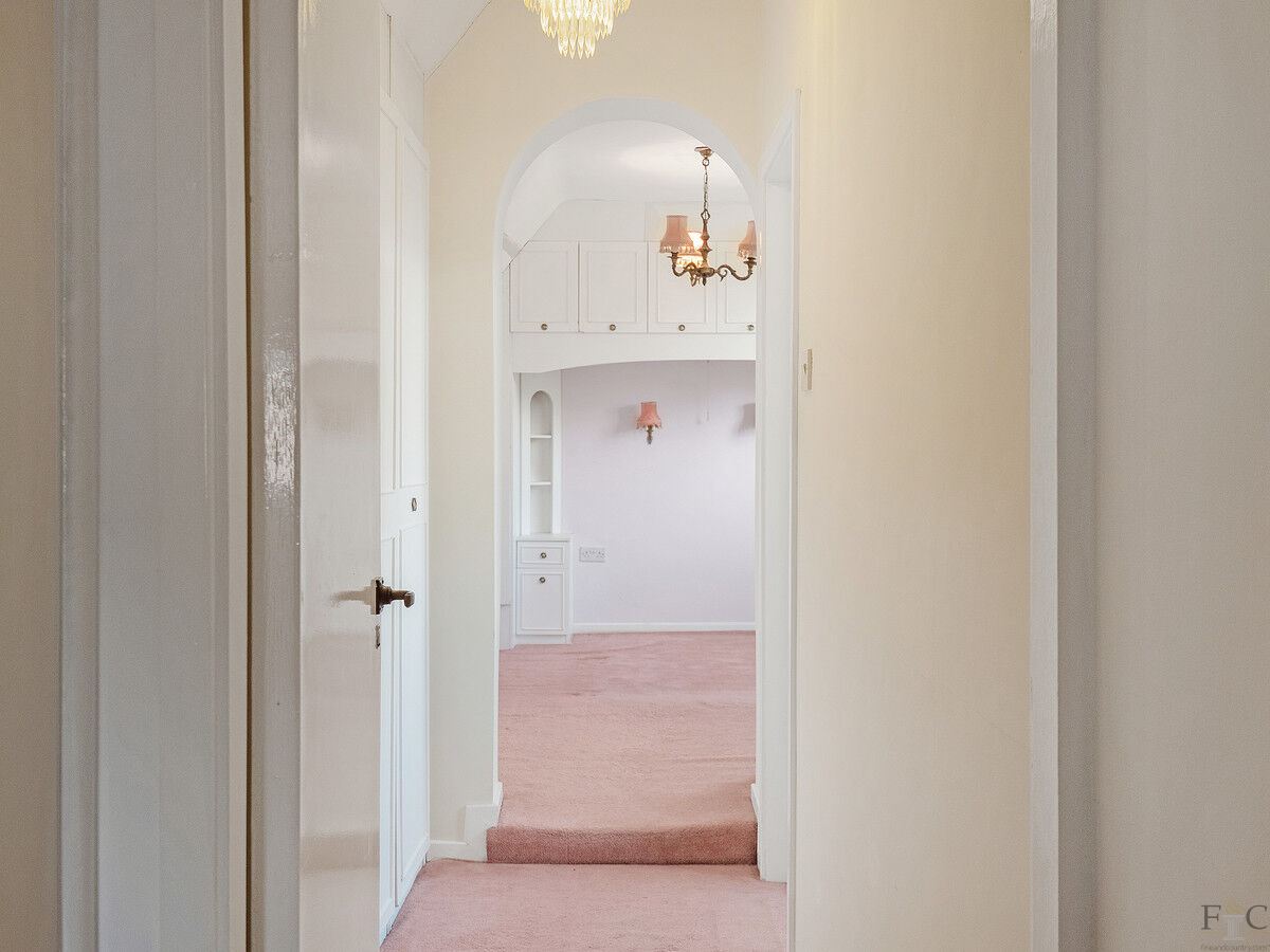 The stairs and landing branch off into three well-sized bedrooms (including one with en suite bathroom and sitting room) and family bathroom. Find lots of storage on the light-filled landing too.