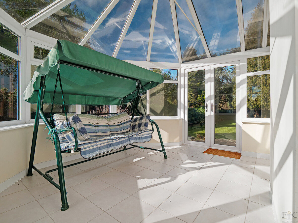 The garden surrounding this property is large and waiting for a taste of the Good Life. Mature hedges and trees give privacy, whilst lush lawns and established borders encompass patios for that perfect outdoor experience.