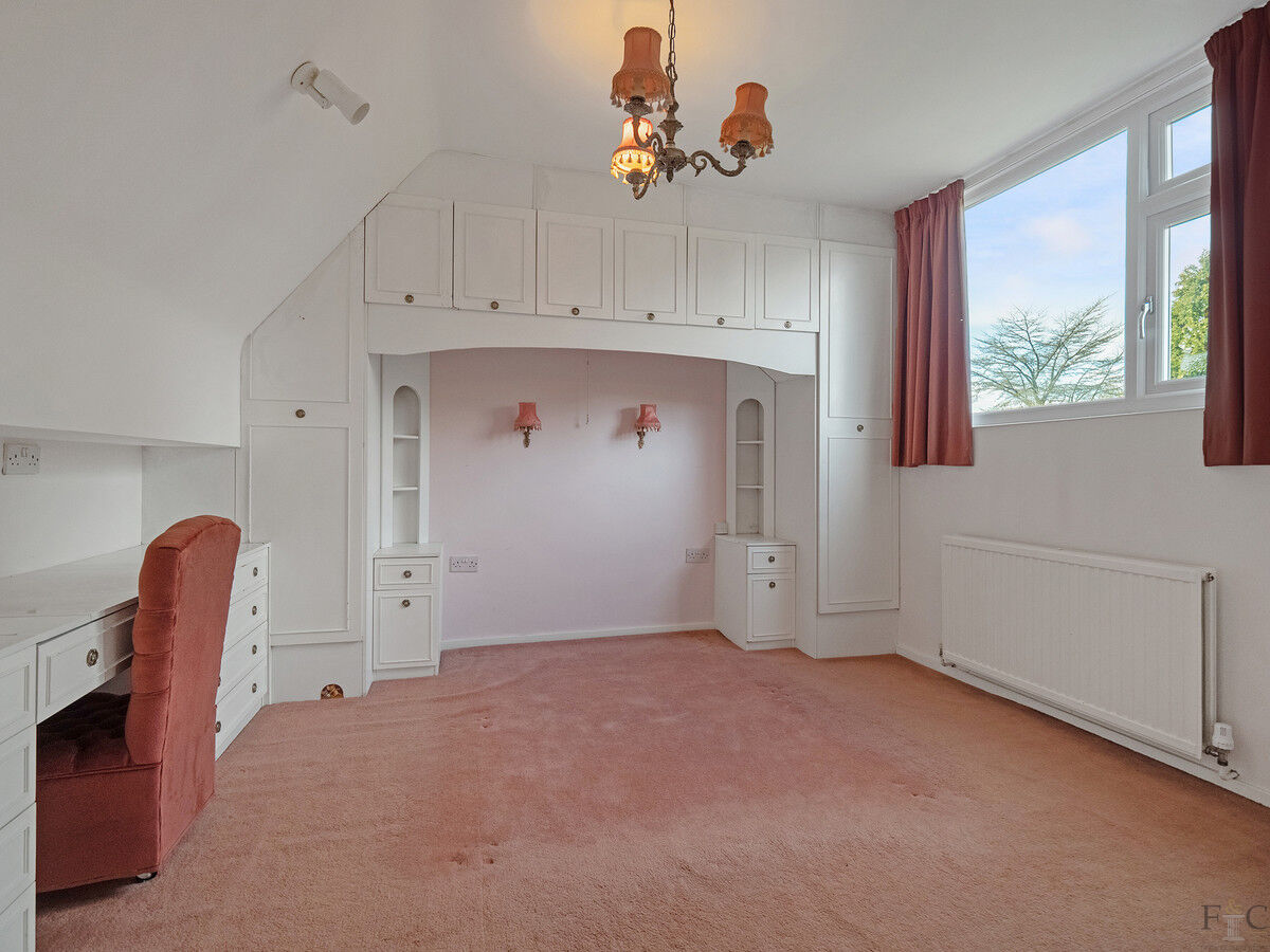 The ground floor bedroom to the right of the hallway, gives views through large dual aspect windows over the front of the property. It is a great size and has a neighbouring shower room.