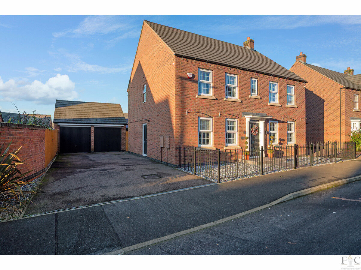 This is a lovely home settled within similarly attractive properties, in a quiet residential area of Glenfield village. Here, you have a house of quality and size, built to incorporate classical features with all the advantages of contemporary style. The sash reproduction windows, chimney pot, brick castellation and window ledges, work favourably together to create a property that was built in 2014 and is still within its ten year building warranty. It has been designed to salute traditional trends and fulfil today’s expectations of a large family home. It is a four bedroom detached property in excellent condition, with three separate reception rooms, two bathrooms and a garden office.