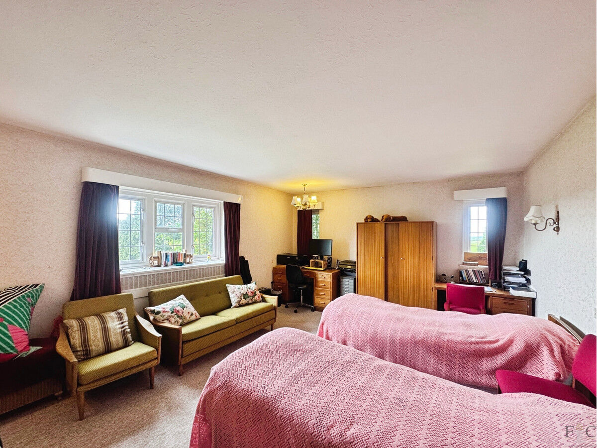 From the kitchen, a secondary hallway gives access to a separate utility room, a full ground floor bathroom, and a snug/study with front-facing views – a versatile space that could serve as a fifth bedroom or cosy reading retreat. This wing of the home also reveals a peaceful courtyard and access to a gated annexe space, ideal for multi-generational living or bespoke conversion.