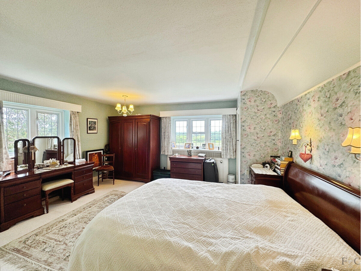 The gentle return staircase leads to a beautifully lit landing and four generous bedrooms. The principal suite enjoys a large en-suite bathroom and elevated views across uninterrupted countryside – the perfect view to wake up to.