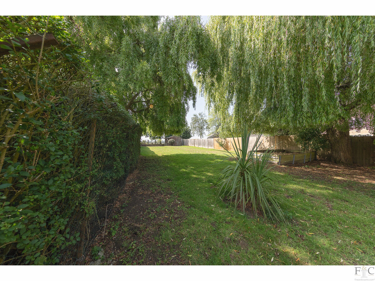 Outside, Hillcroft’s rear garden is a true delight. A generous patio area is perfect for entertaining or soaking up the sun, while the lawn beyond is framed by mature shrubs and trees, creating a wonderful sense of privacy. At the end of the garden, a vegetable patch and garden shed provide a space to grow and potter, all set against the picturesque backdrop of rolling fields—a scene to soothe the soul.