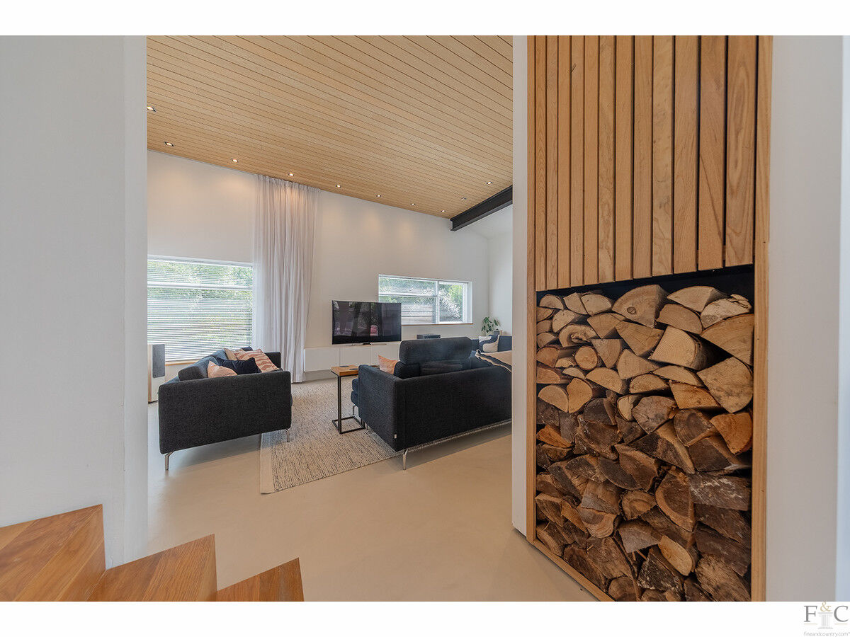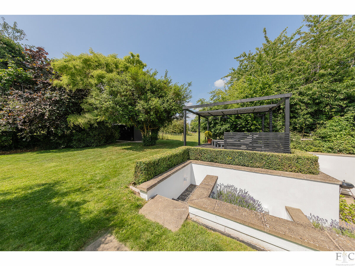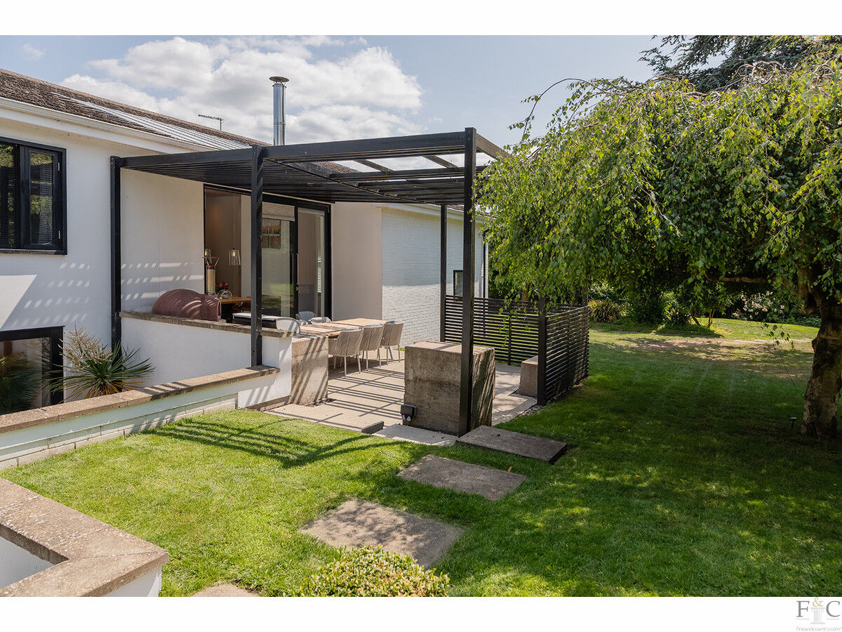 Peatling End is a truly unique, mid-century modern home, blending striking architectural design with an inspired use of space, natural light, and materials. Set along a quiet lane behind electric gates, its bold façade of timber cladding and crisp white render hints at the sophisticated living within. The property sits within just under half an acre of landscaped gardens, complete with stylish terraces, an outdoor kitchen, and open countryside views.