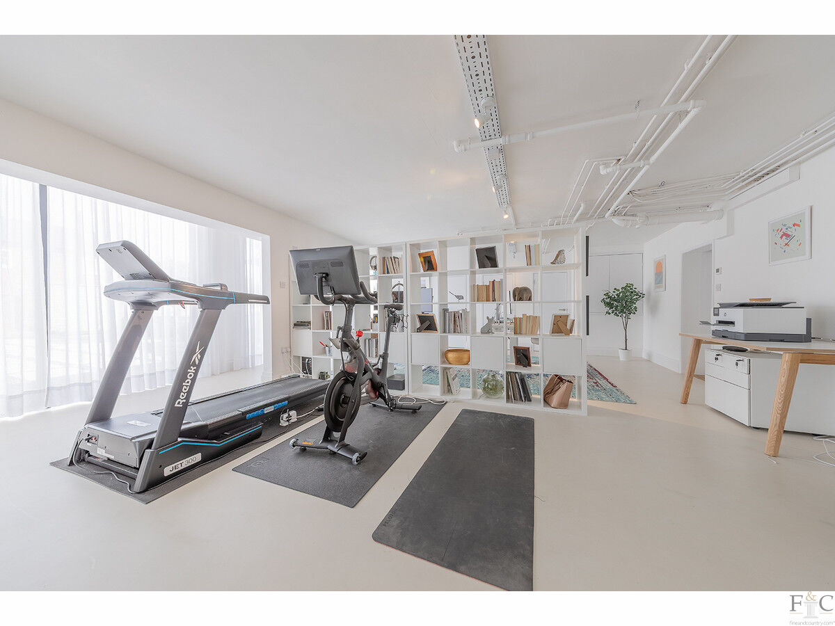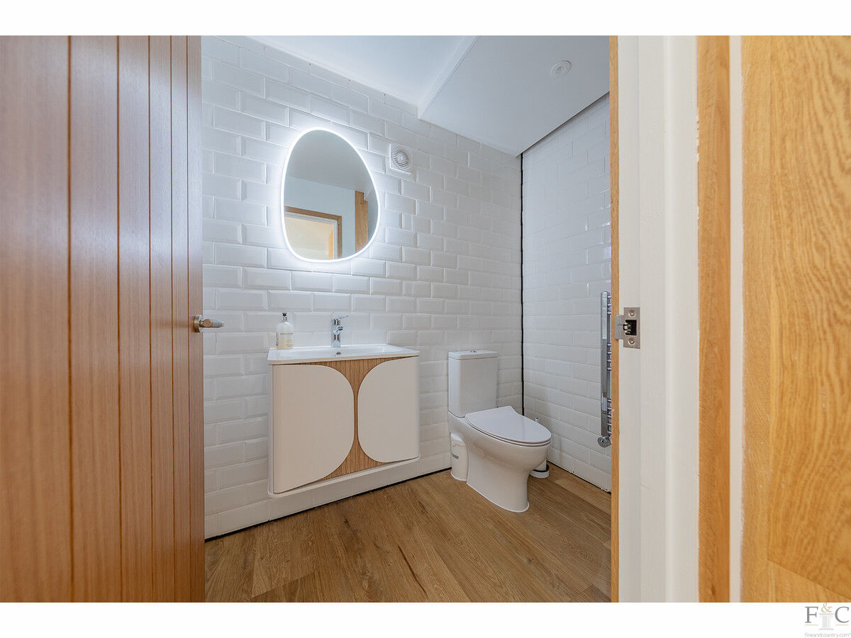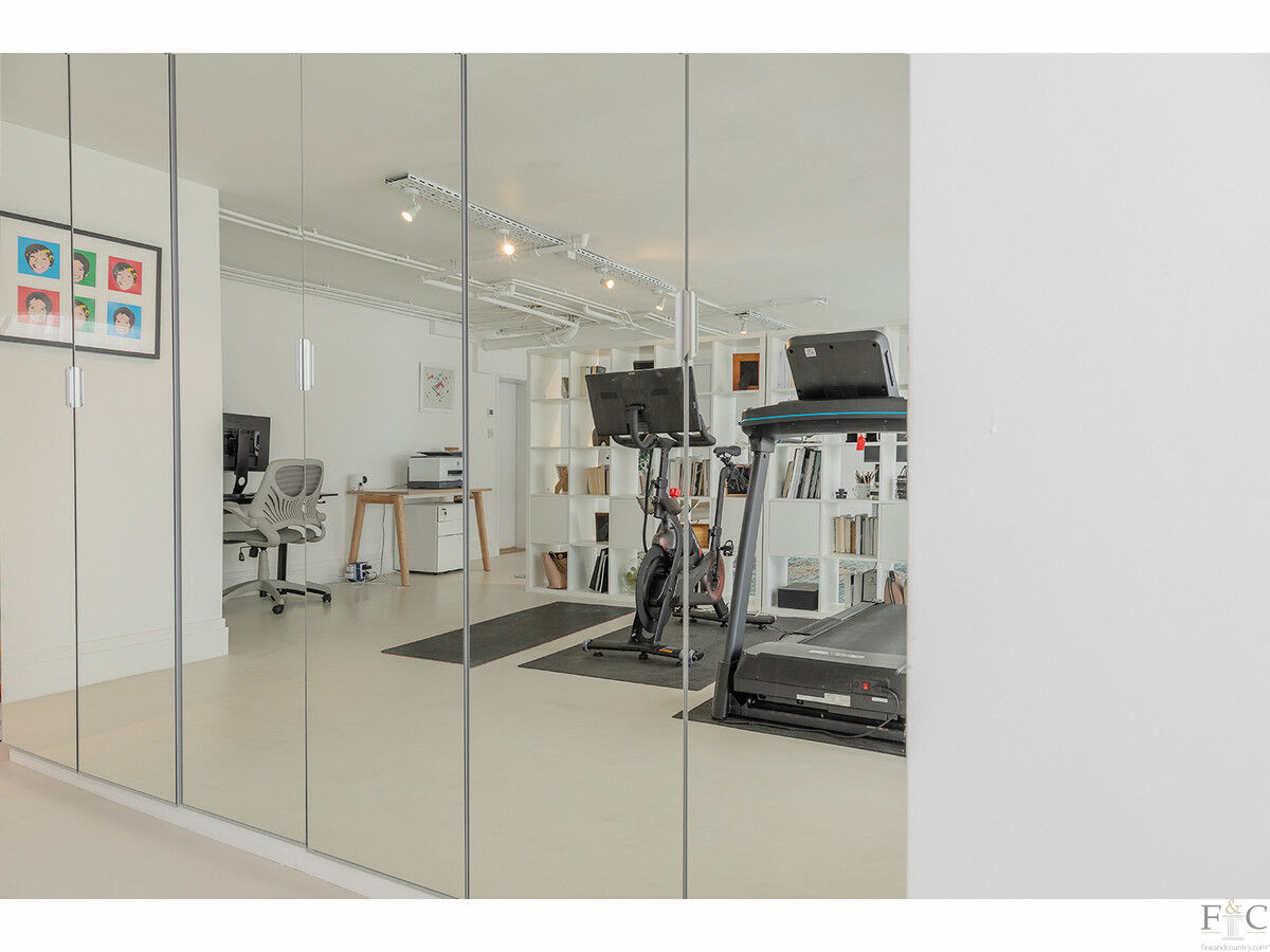 A separate studio, currently arranged as a home office on one side and a gym on the other, enjoys independent access from the courtyard. The space works brilliantly as it is, offering superb flexibility for home workers or those needing dedicated creative or fitness space. Combined with the adjacent ground-floor bedroom, complete with a newly refitted shower room and access to a private sunken patio — it could also serve as an independent annexe (subject to consent) or a luxurious guest suite.