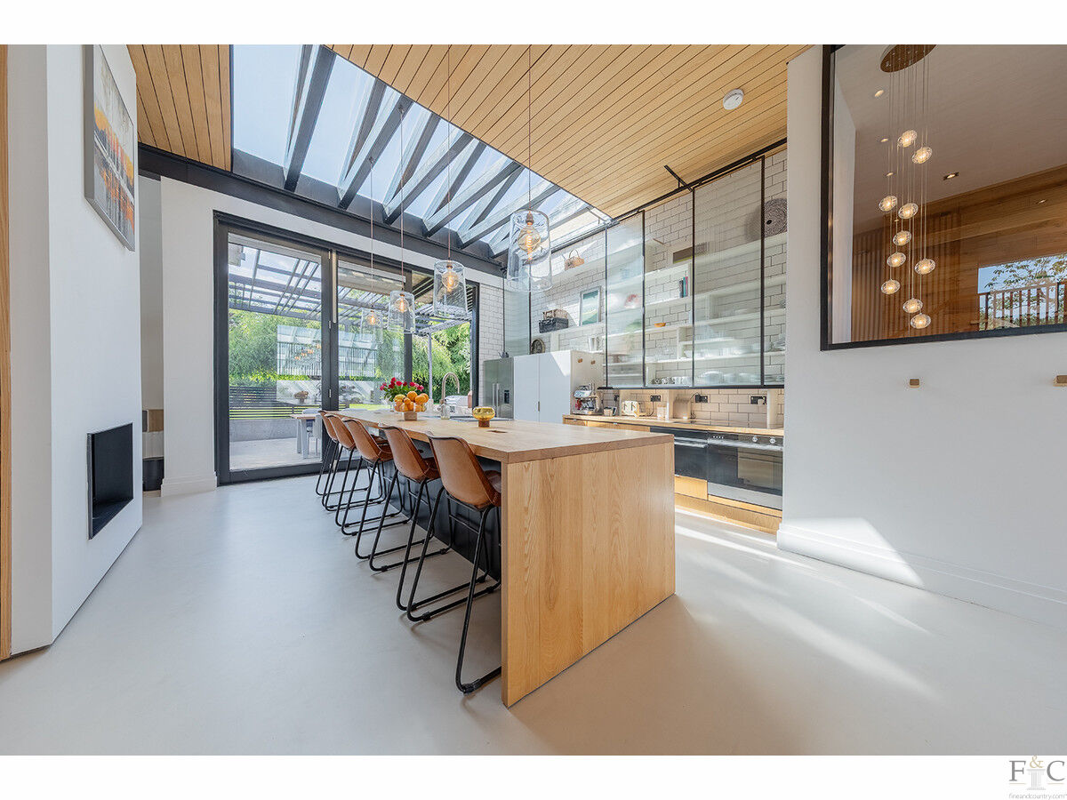 Originally designed in the late 1960s/early 70s by architect Douglas H Smith, the house has been thoughtfully reimagined to provide approximately 4172 sq.ft of flexible, design-led accommodation arranged over three floors.
