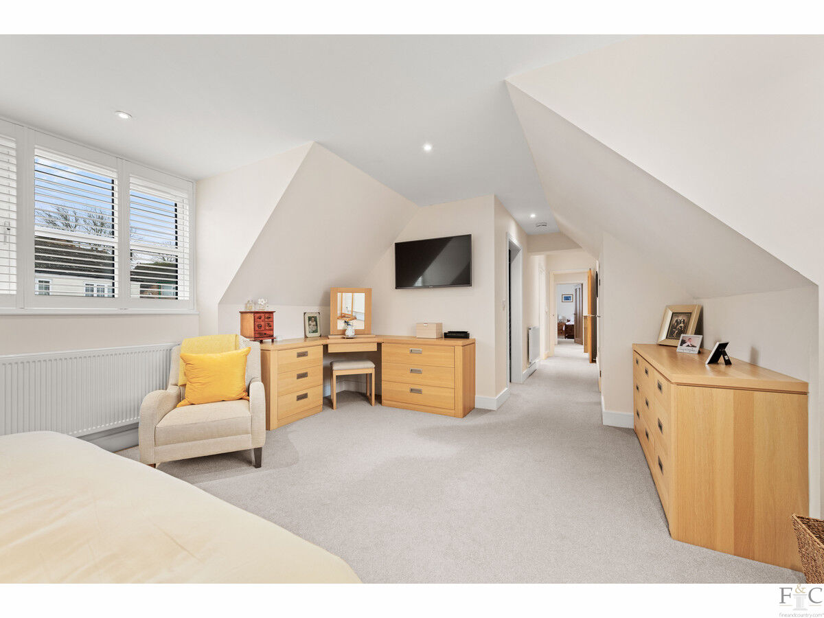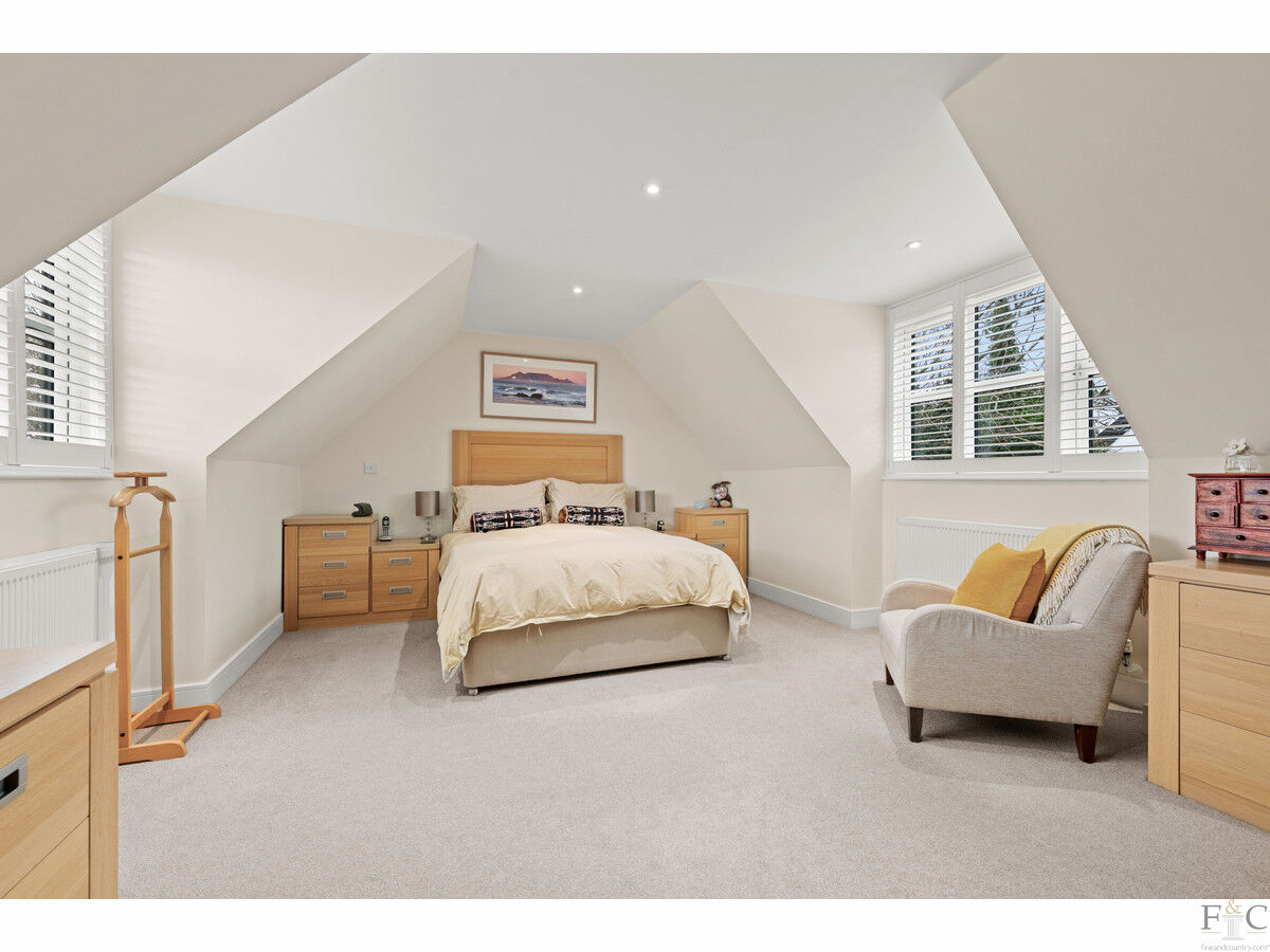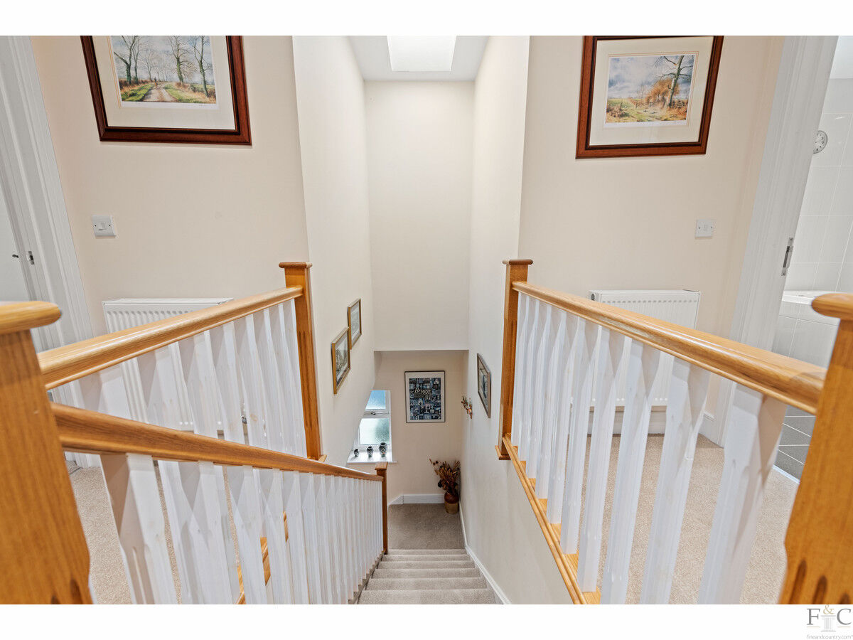If we now double back through the kitchen and re-enter the hall, the carpeted staircase turns up and round, back into the centre of the house and a large landing exposes the arrangement of doors leading to a family bathroom, four bedrooms and two en-suites.