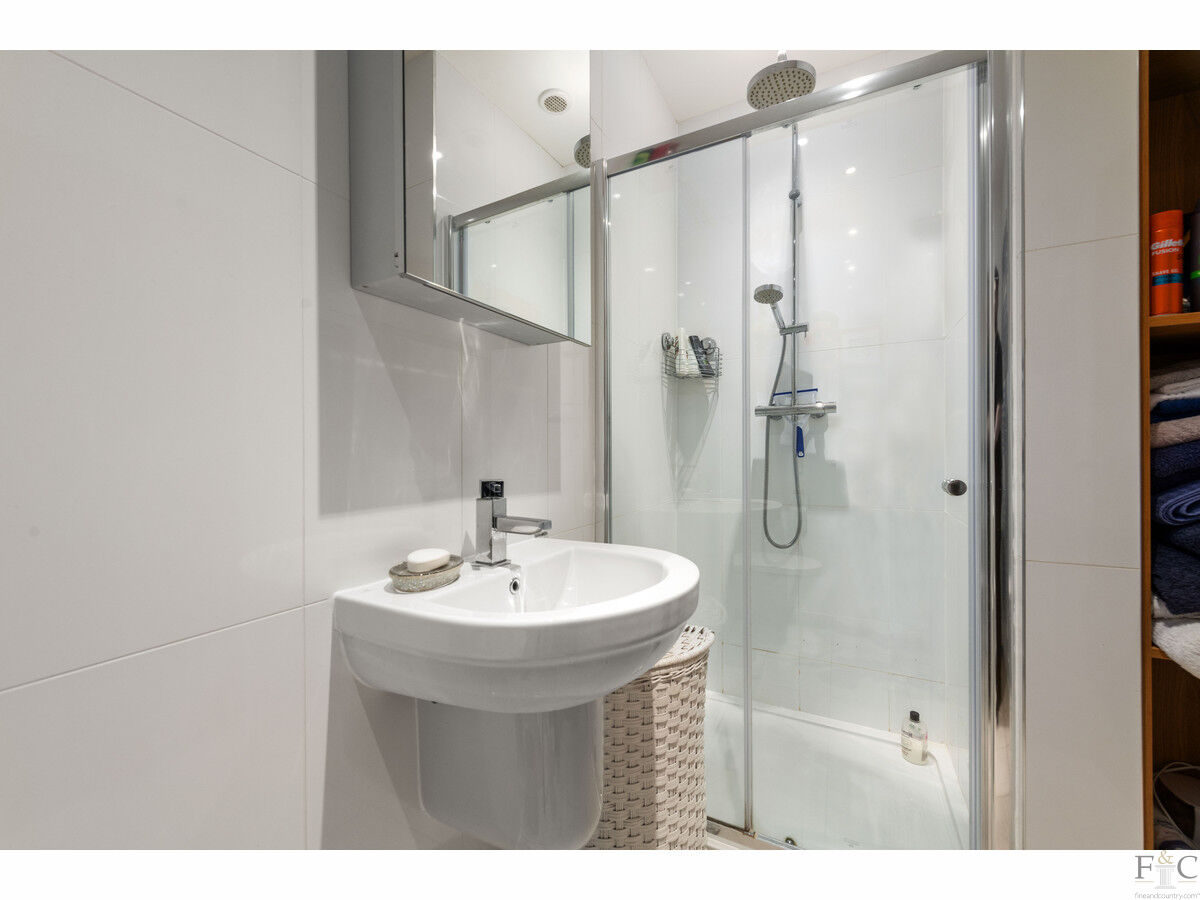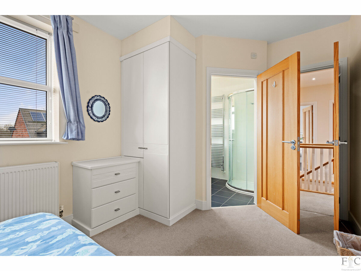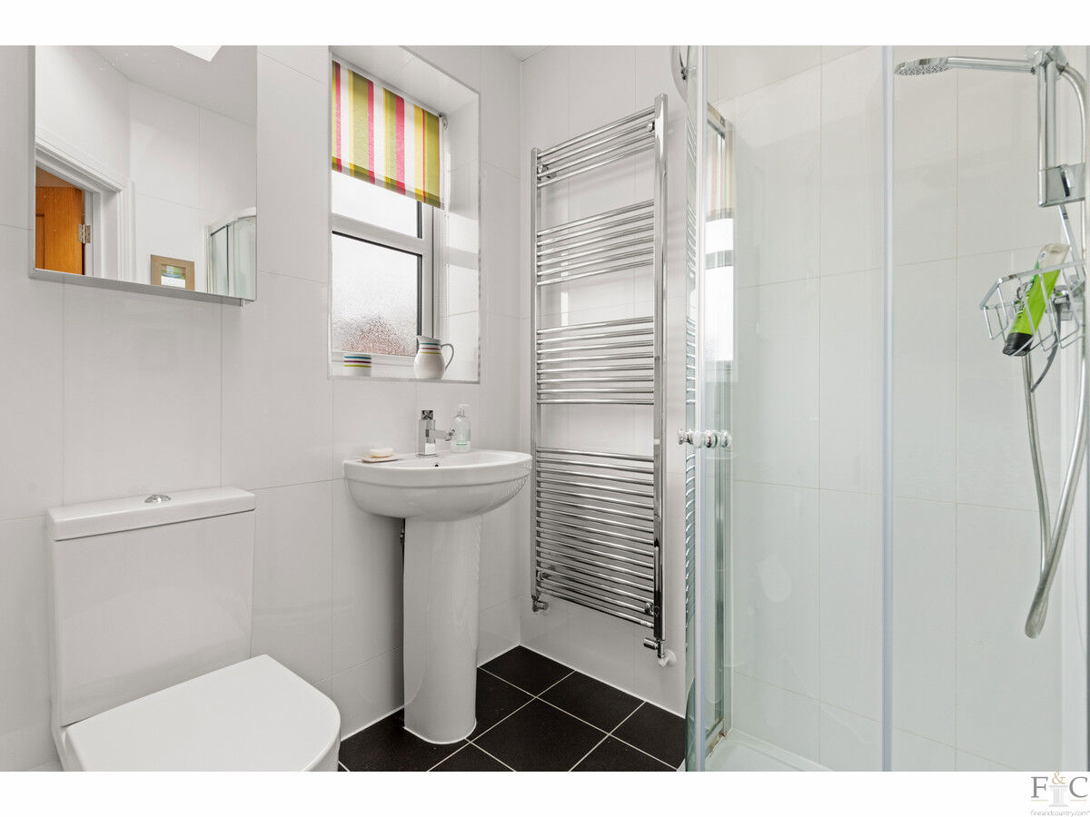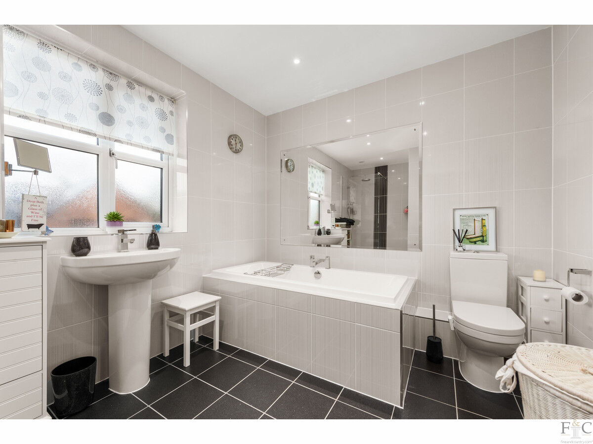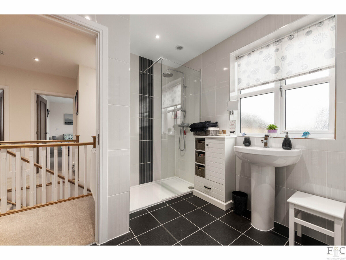 The family bathroom has a contemporary colour scheme and a bath, giving the room a luxurious feel. This property has four bathing facilities – cloakroom, two en-suites and a family bathroom - similarly fitted to a high specification with hard flooring and contemporary heated towel rails and white sanitary ware.