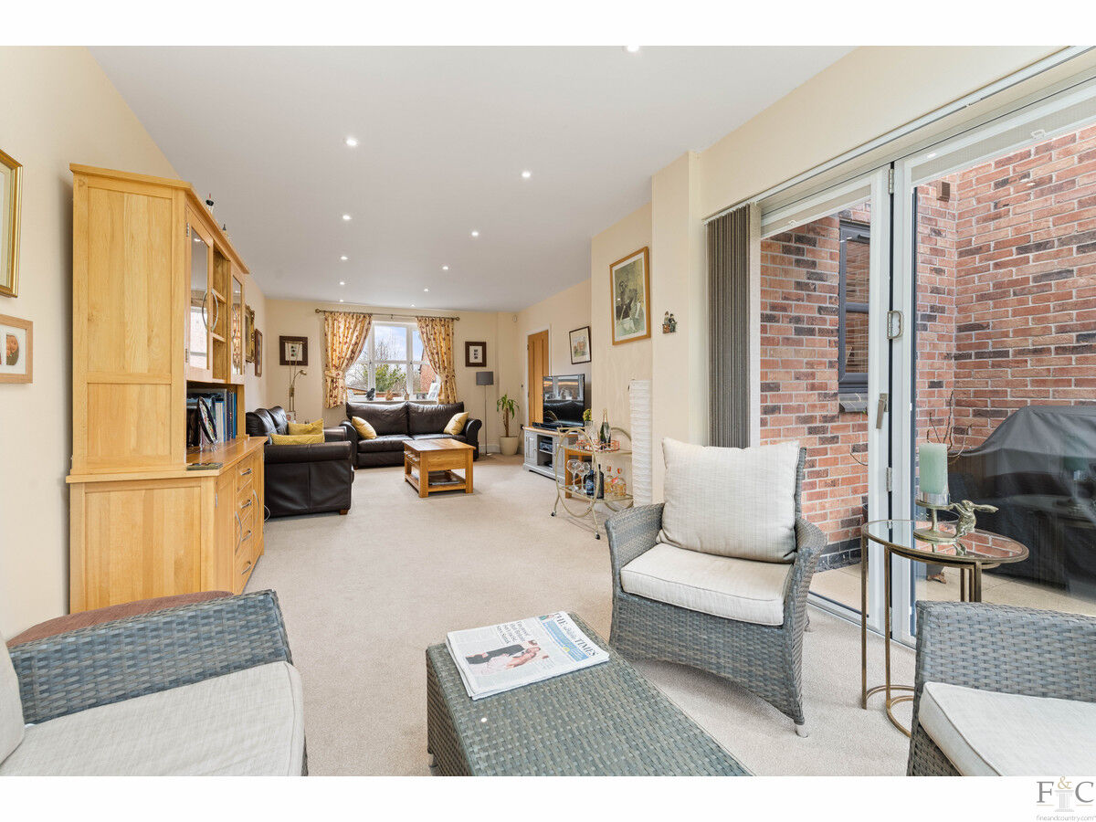 The impressive lounge has been designed to maximise the amount of light to flood into the room: here there are triple aspect windows that look to the front, back and above. This room spans the depth of the house and presents the owner with multiple ways of arranging furniture to sub divide its purpose or simply keep it openly functional. Double sets of bi-folding doors at the furthest end open onto the patio and raised garden, where a pitched skylight provides the third aspect and creates a perfect seating area to enjoy views of the garden in all weathers.