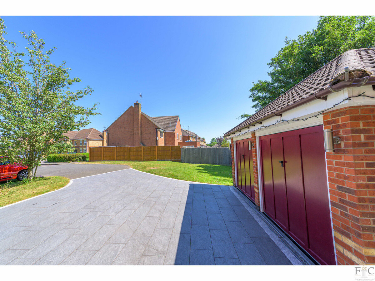 This property is positioned in a secluded cul de sac, nestled amongst mature native trees and neighbouring similarly prestigious properties. It has an open aspect with a generous front garden, has outdoor lighting and curved blocked drive leading to a double fronted detached garage. There is ample parking in this quiet and leafy corner plot on Buzzard Close, in the Leicestershire village of Broughton Astley. This is a move-in-ready property and is situated in a superb location. It is within walking distance of the village centre and open countryside.