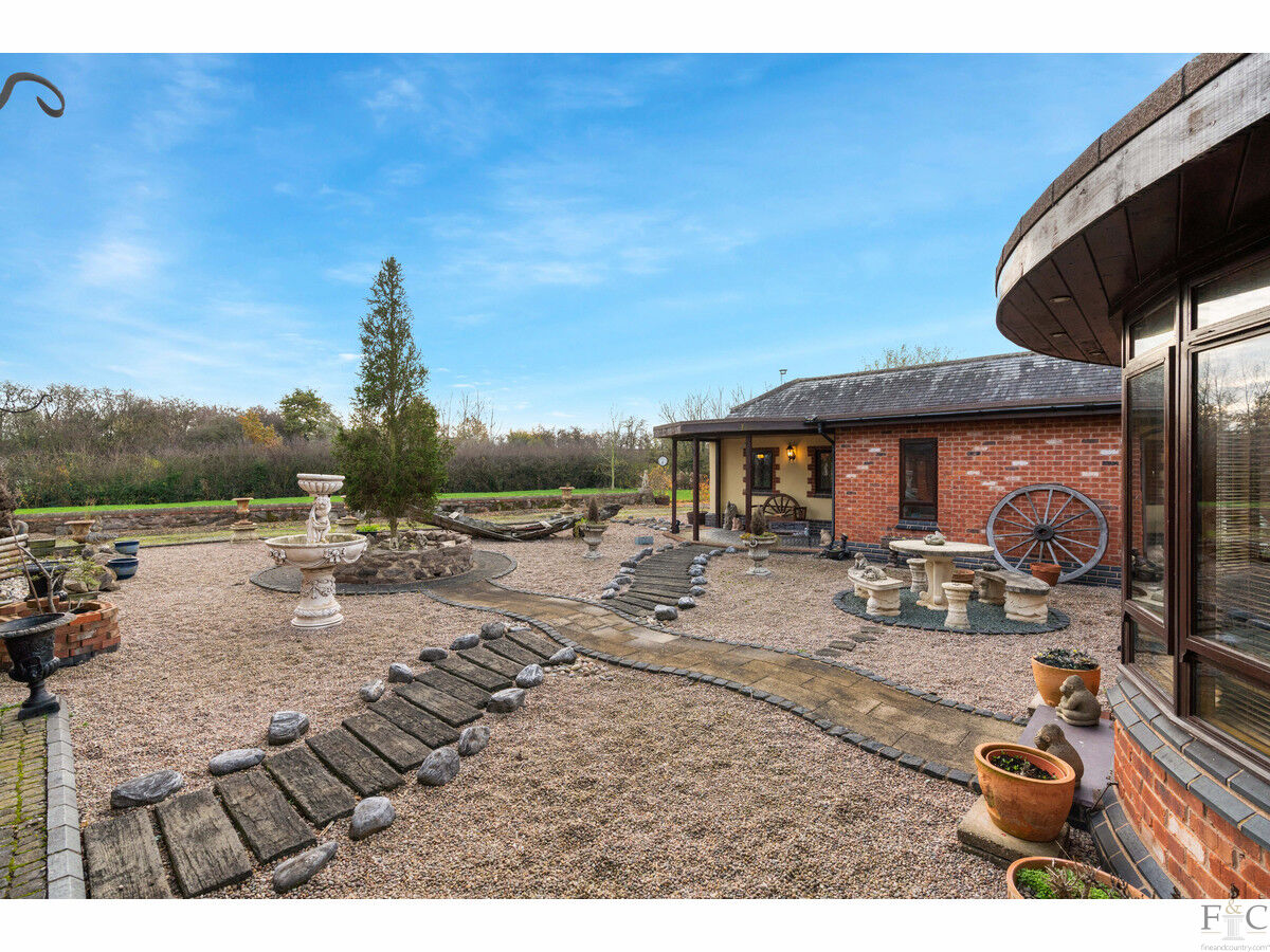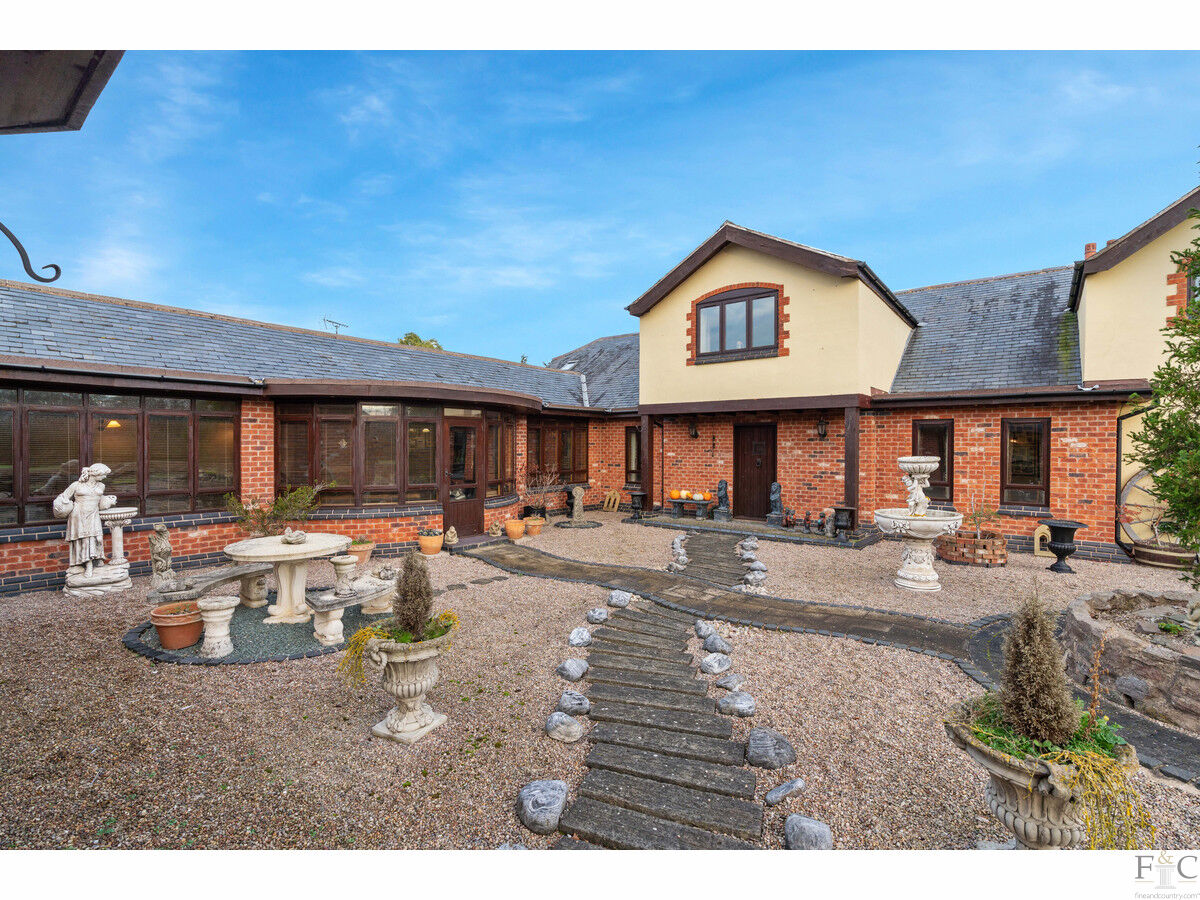 Alternatively, a decorative driveway with a walled and gated entrance leads to additional parking beside the house and a carport out of sight of the road. Surrounded by gardens and views across your land, the brick-built and part-rendered exterior hugs a delightful pebbled and paved courtyard garden to the front.